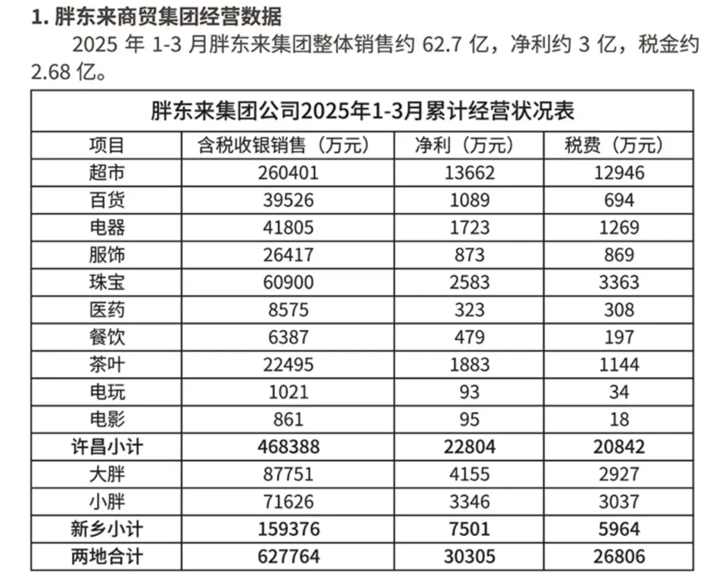 (胖东来一季度经营数据,来自胖东来商贸集团微信公号)