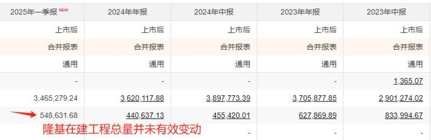 其次,隆基绿能50GWBC2.0电池组件的规划目标,到底能不能实现?不得而知。我们只能从并未有效增长的在建工程一探究竟: