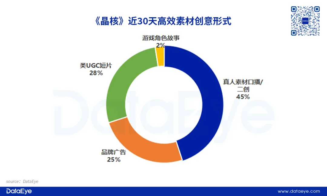 DataEye-ADX显示,《晶核》高效素材创意形式中,基本以展示游戏角色内容以及游戏画面实录为主。