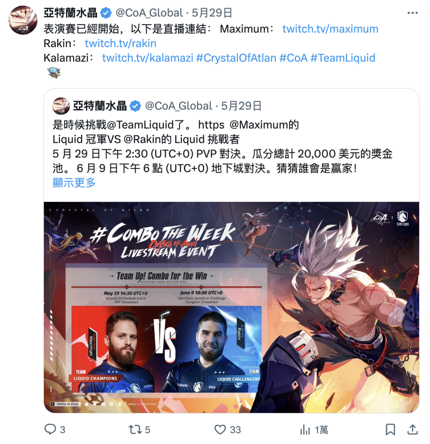 针对英文市场:举办职业战队挑战赛,瓜分2万美金的奖池。