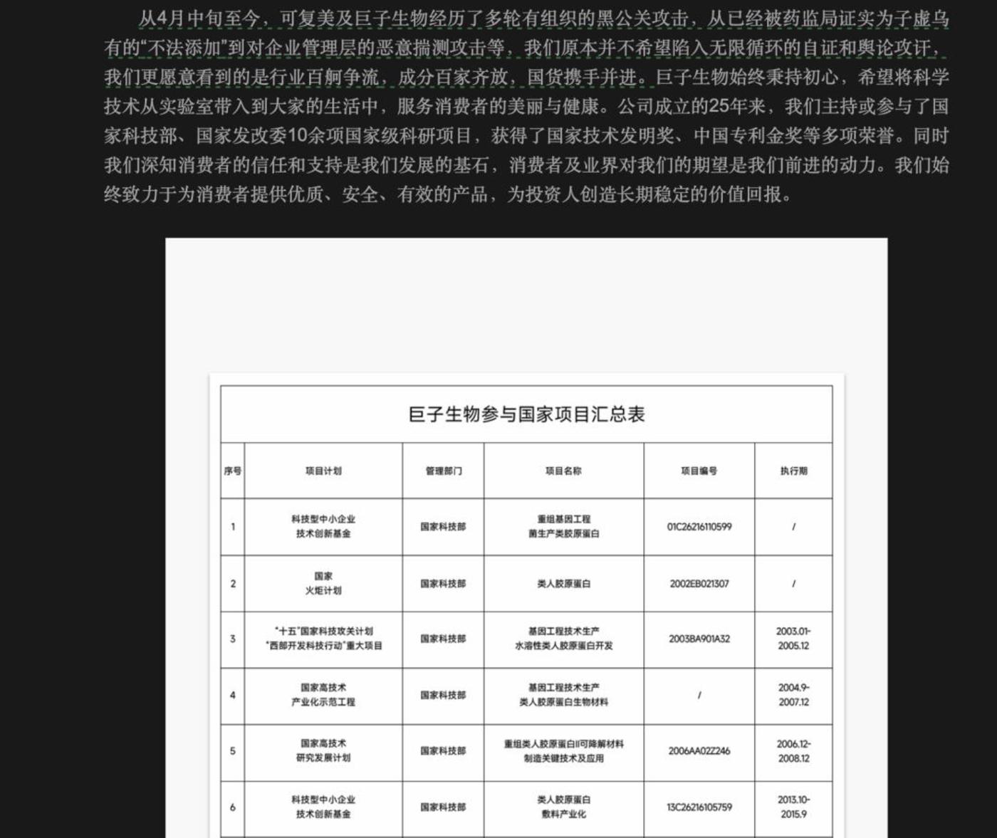 争议出现后,胖鲸和巨子生物以及郝宇都进行了一轮沟通,巨子生物方面表示相应材料会在准备好后陆续发出,无法脱离员工身份回应对网传问题的看法。