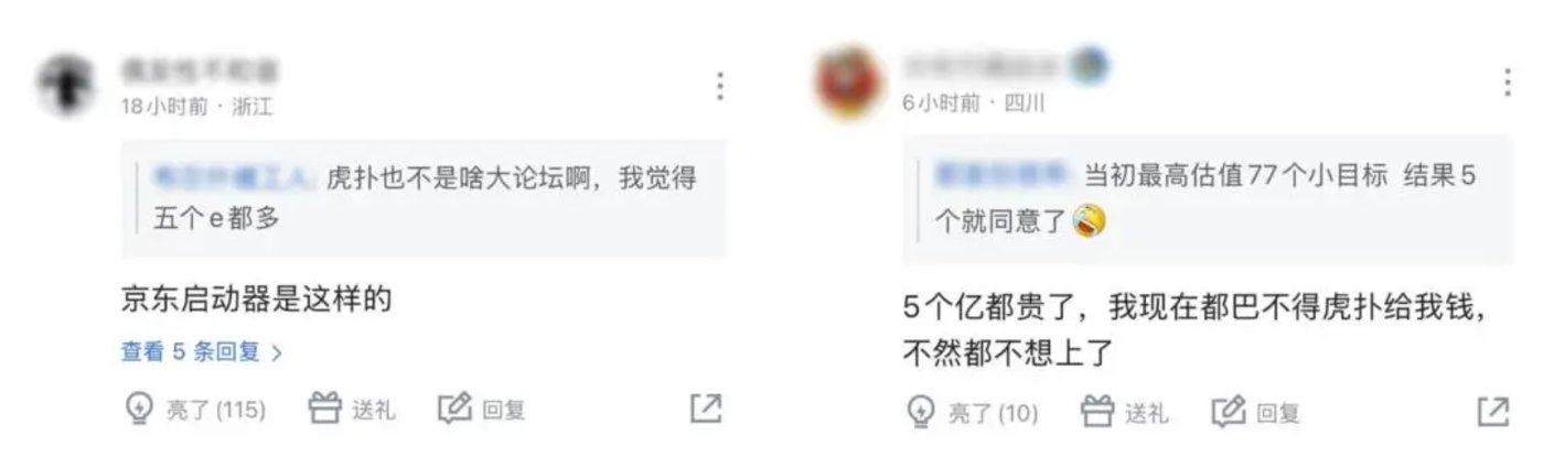 但果真如此吗?虎扑估值从2019年的77亿到如今的5亿,跌去93%,与得物等创新业务剥离并财务独立不无关系。
