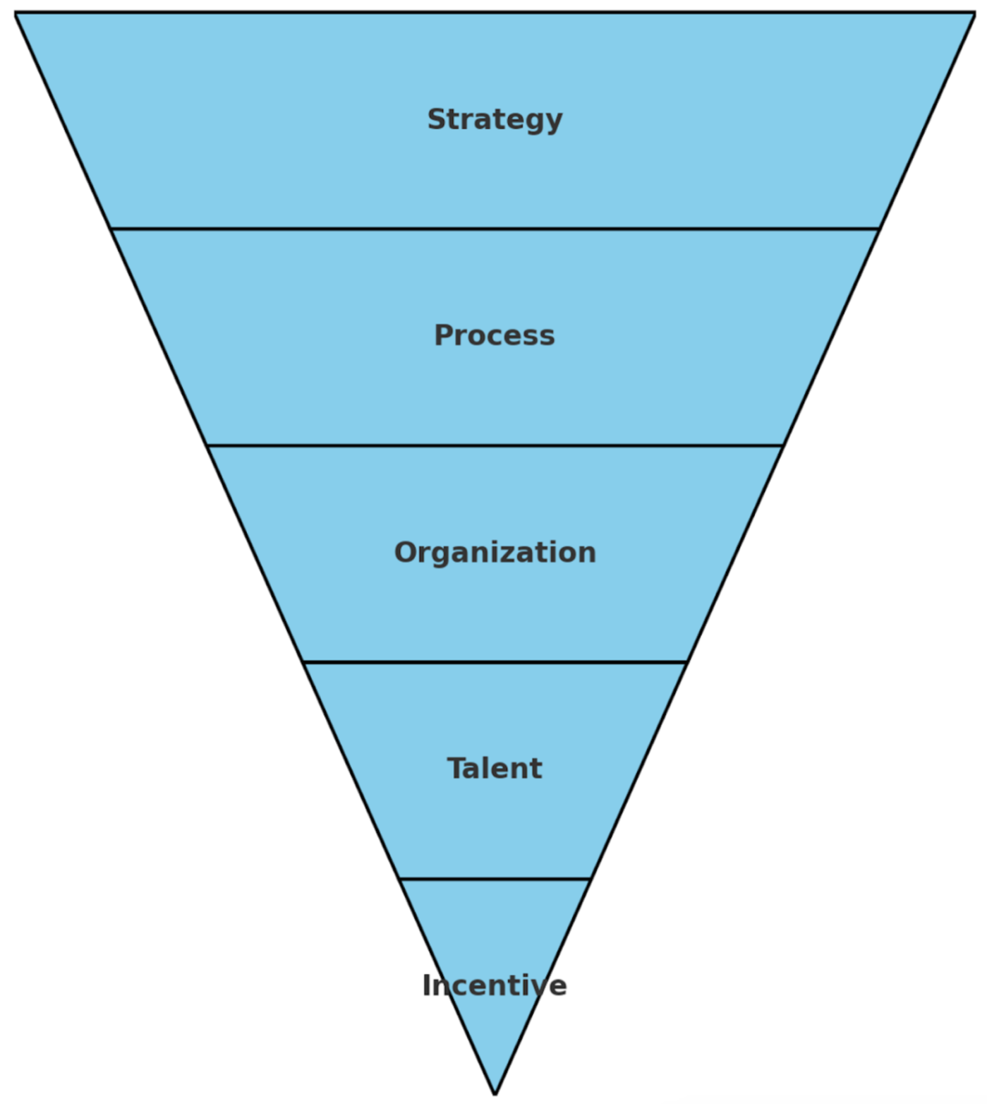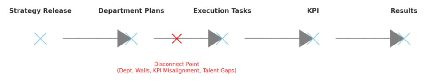很多企业的问题不是没有战略,而是有了战略之后,就“撒手不管了”。战略落地不是一场发布会,而是一次系统性改造。从战略到结果,中间需要一整条完整的链路——战略 → 流程 → 组织 → 人才 → 激励 → 结果。