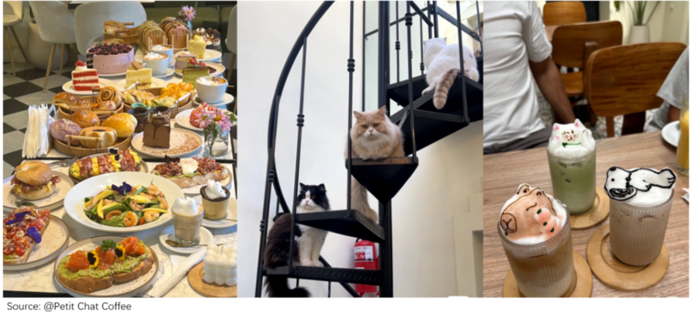 她以中式甜点+撸猫为特色,开了一家咖啡店,新颖的口味和业态,让她开业第二个月就迅速跻身网红店行列,客人进店要先排两个小时的队。