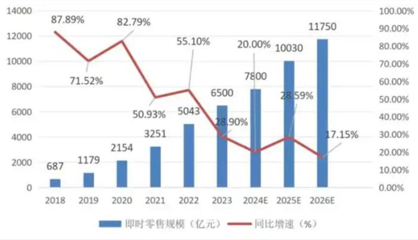 从体量上来看,2024 年国内餐饮外卖将近 1.7 万亿元,也就是说即时零售的市场规模马上就要再造一个“外卖”,当年的畅想正在变成现实。