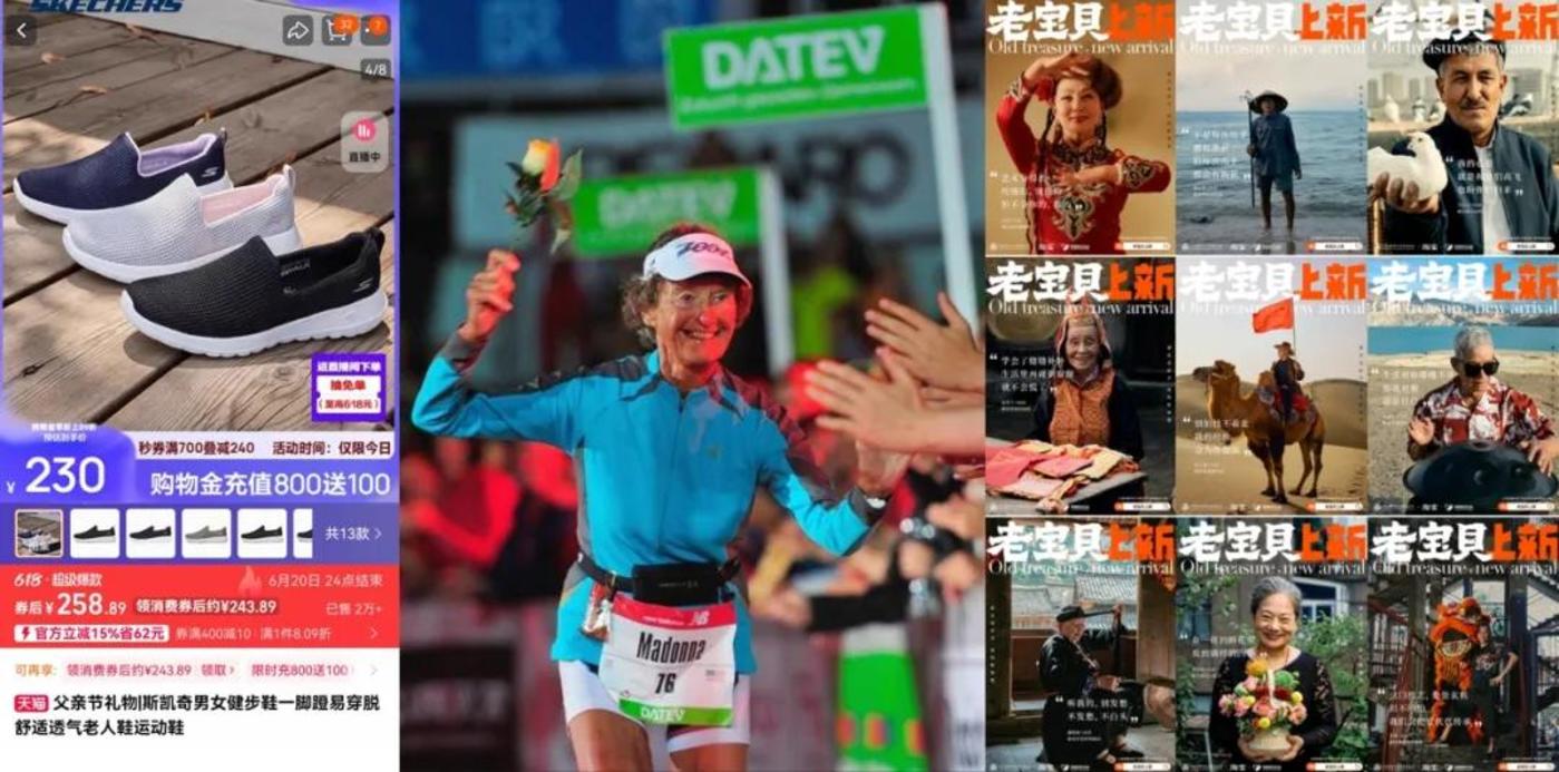 李佳琦和美ONE只是冰山一角。越来越多的消费品牌、互联网平台瞄准银发一族:斯凯奇给自己打上「老人鞋」、「送父母必备」的标签,耐克邀请86岁高龄的铁人三项选手Sister Madonna Buder拍摄广告,淘宝携手中国老龄事业发展基金会上线「老宝贝上新」公益计划,小红书发布了《爷奶版使用手册》……