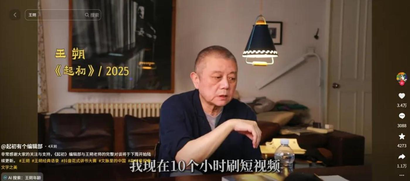 作家王朔自爆“一天刷10小时短视频” 图源:抖音
