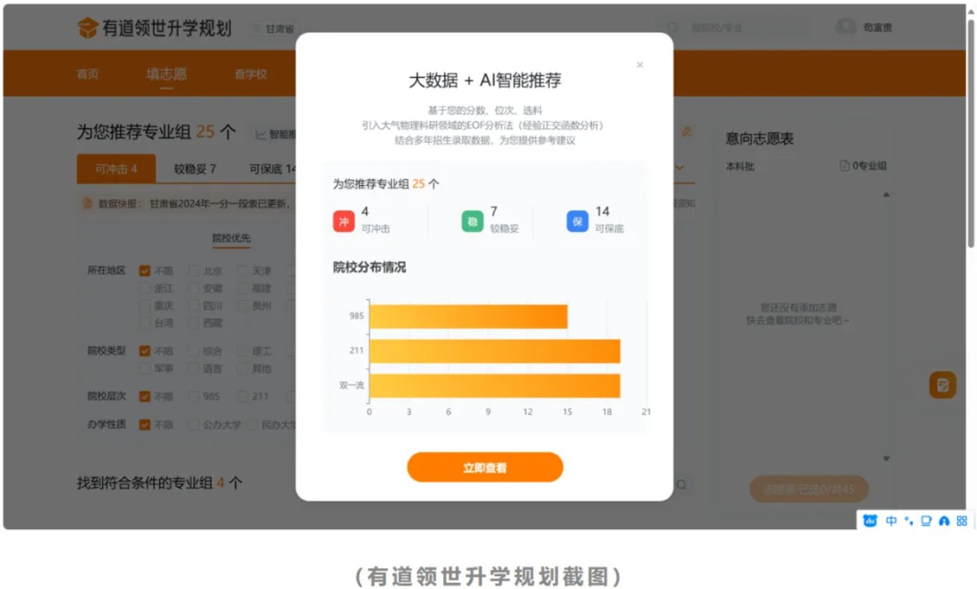 AI在高考领域另一重大应用是,帮助考生和家长填报志愿。