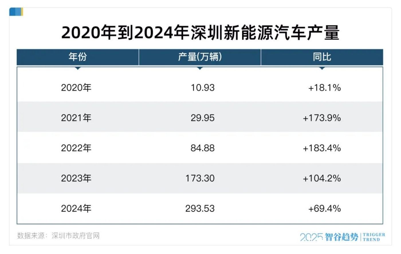 深圳还是最早推广新能源汽车的城市之一,早在2009年就出台了相关扶持政策,2017年在全球率先实现公交全面电动化,2018年实现出租车全面电动化。在市场应用的带动下,深圳新能源汽车产业快速发展,2023年和2024年蝉联“中国新能源汽车产量第一城”桂冠。