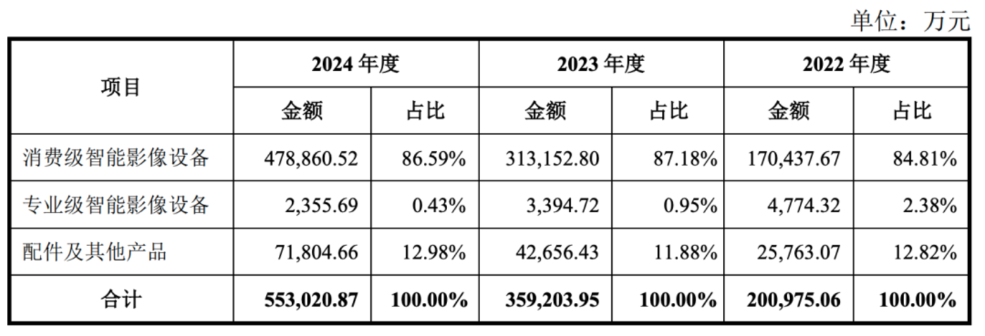 2022至2024年度影石创新收入构成情况,图源/招股书