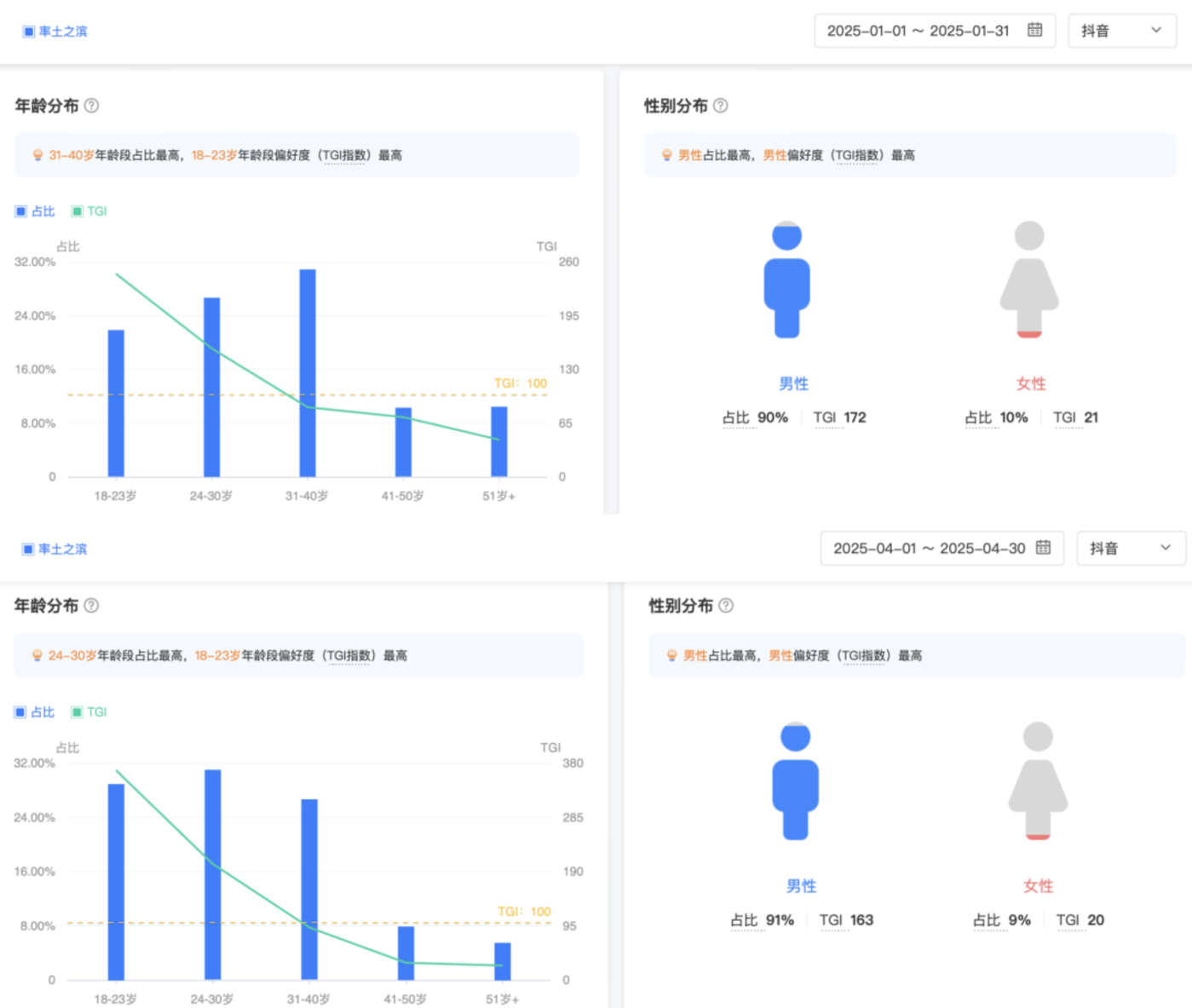 玩家——根据巨量算数的数据显示,可以明显看出,《率土之滨》在青春服上线(3月27日上线)之后,用户属性发生了明显的变化,从过去中年群体为主,导入了更多的年轻用户,很好的完成了《率土之滨》追求年轻化的目的。