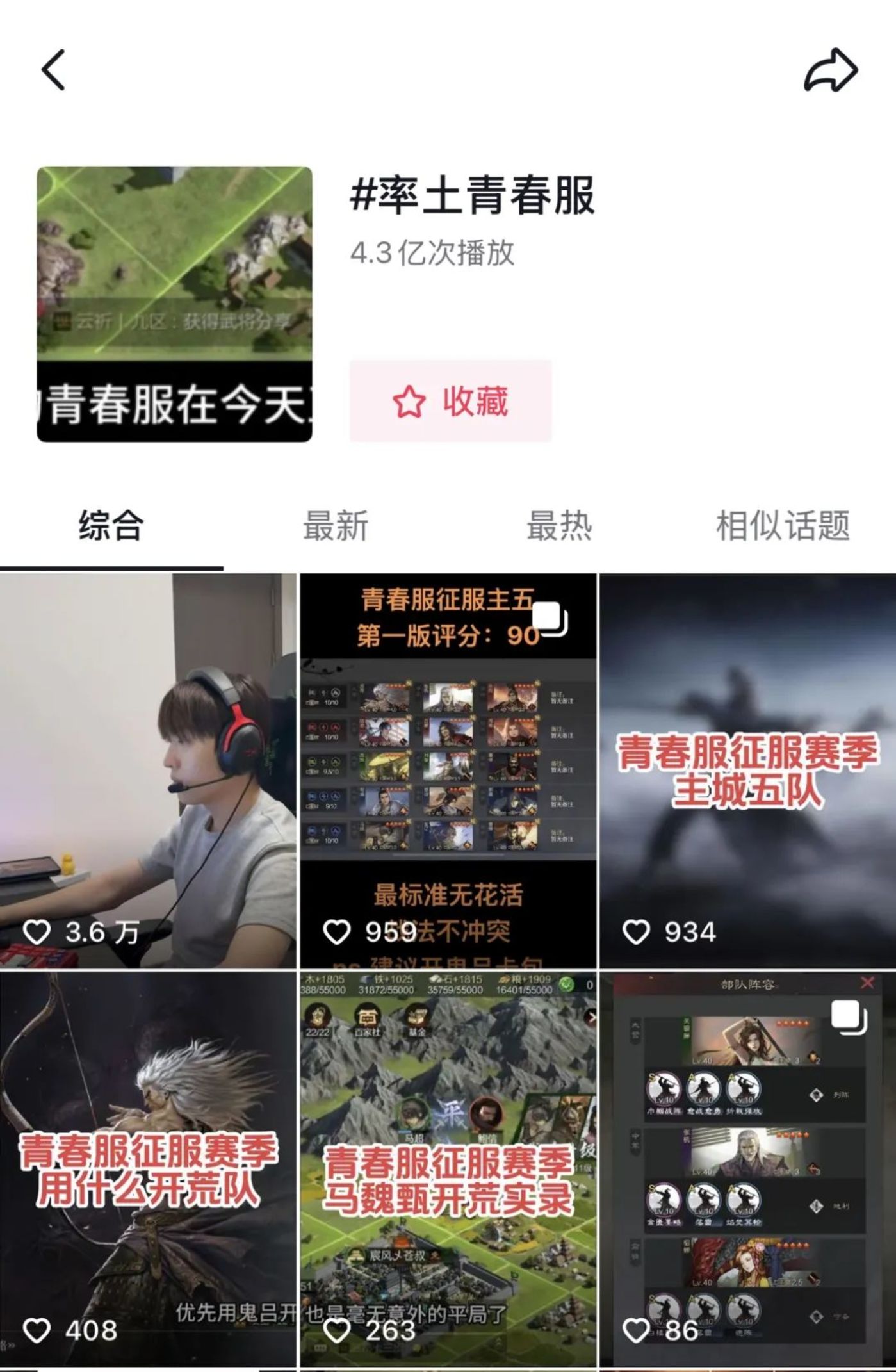 不仅如此,在抖音平台,关于「率土青春服」的话题播放量已经有超4.3亿次的播放,这意味着,有大批量玩家自发性为青春服制作传播内容。