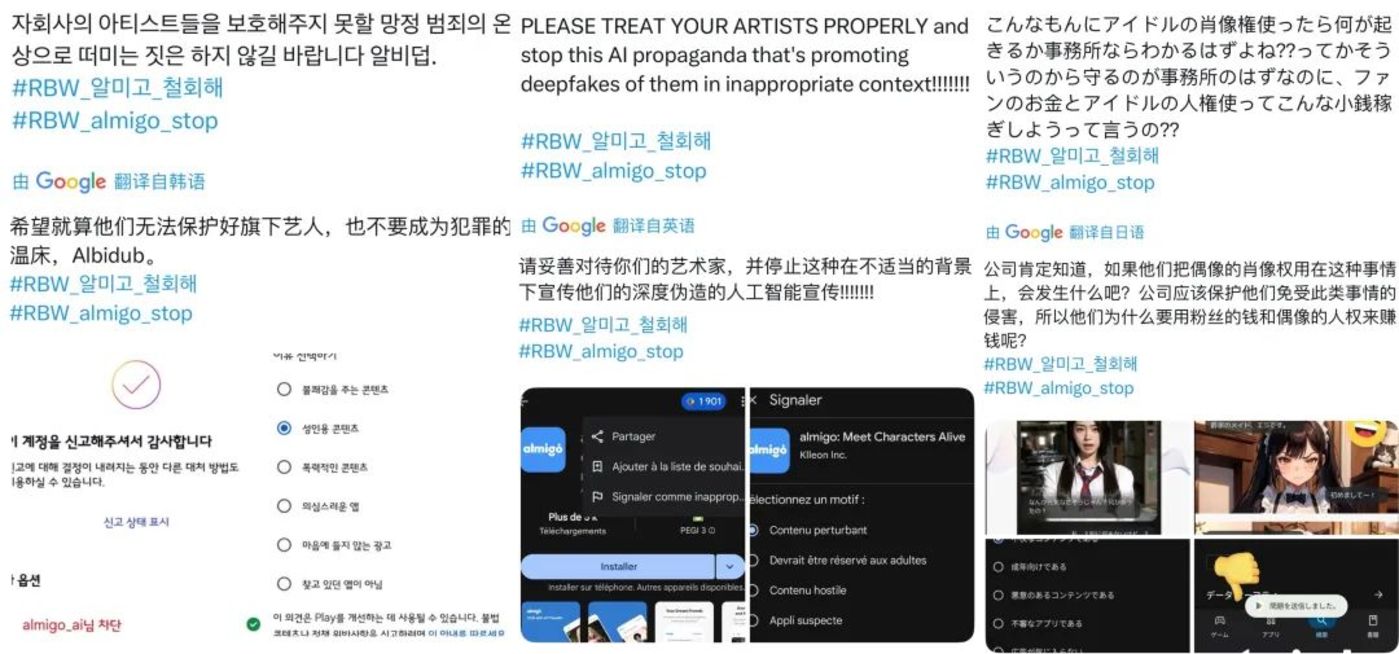推特、Instiz等社交平台上涌现大量抗议声音:“AI物化女性”、“Deepfake犯罪”。不少海外粉丝也联合发起Tag“运动抵制Almigo”。事件发酵后,艺人Solar本人通过粉丝平台回应称“已向公司表达意见”,但表态克制,并未直接提及合成内容的授权过程。