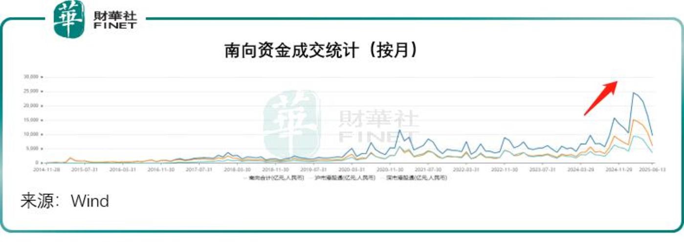 我们根据Wind的数据估算,2025年初至6月13日,南向通合计买卖总额为11.39万亿港元,较2024年同期的3.88万亿港元高出了193.53%;期内成交净买入为6,813亿港元,较上年同期的3,322亿港元高出105.11%,反映出今年以来的南向交易活跃度大幅提升。