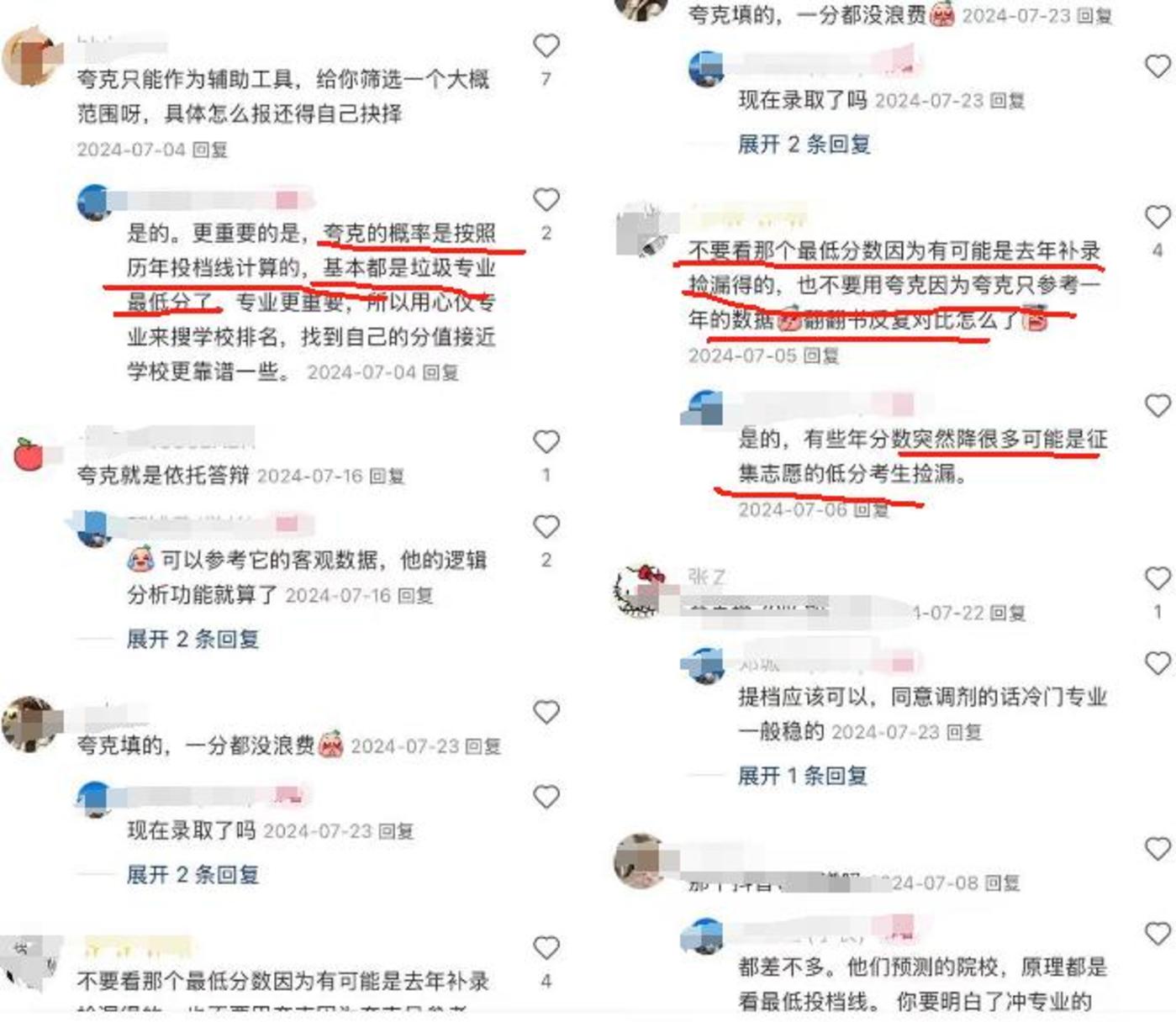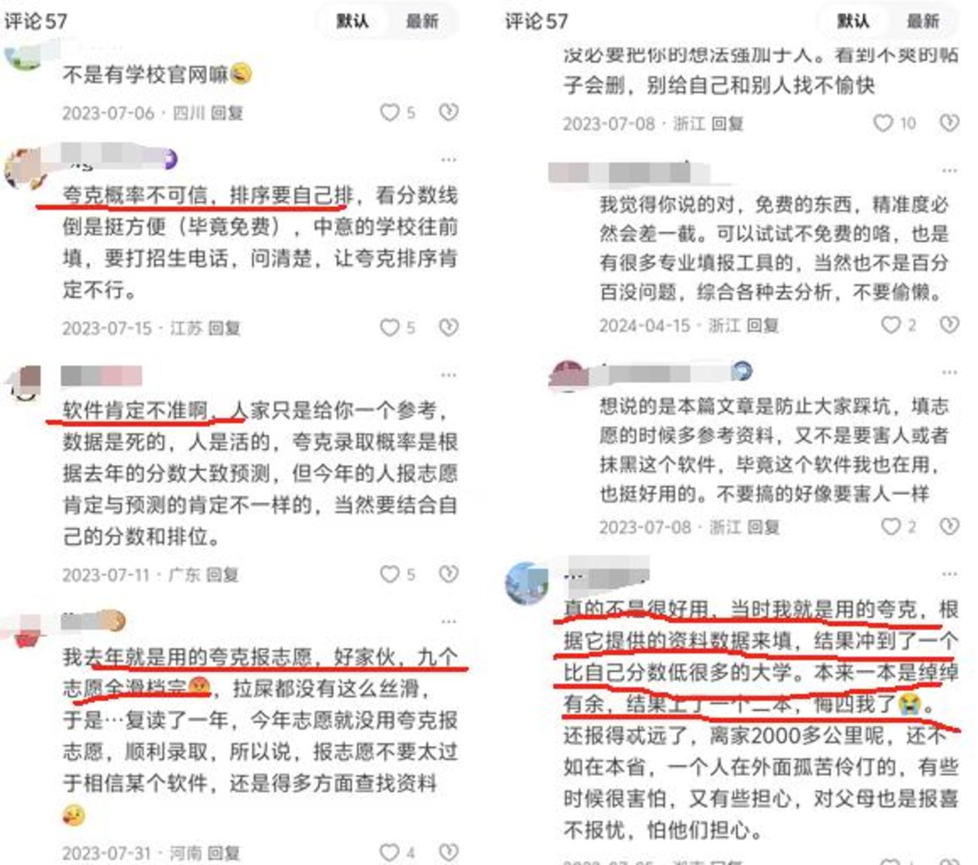 在更早的2023年,被影响的人就更多了。“夸克不可信”“志愿滑档”“一本的分数却报了二本大学”“非常后悔”。