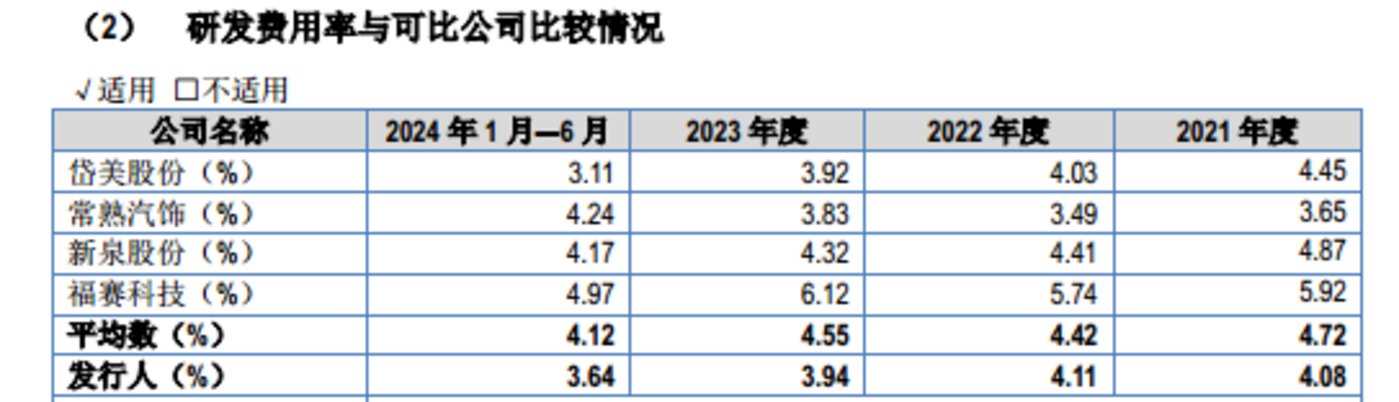 然而,亮眼的毛利率表现背后,通领科技却呈现出另一组耐人寻味的数据,公司研发投入力度长期低于行业平均水平。报告期内,通领科技的研发费用率分别为4.08%、4.11%、3.94%、3.64%,同行可比公司平均值分别为4.72%、4.42%、4.55%、4.12%,研发费用率始终低于同行均值。这种“高毛利”与“低研发”的矛盾组合,不仅打破了市场对技术驱动型企业的传统认知,更引发了对其盈利模式可持续性的质疑。