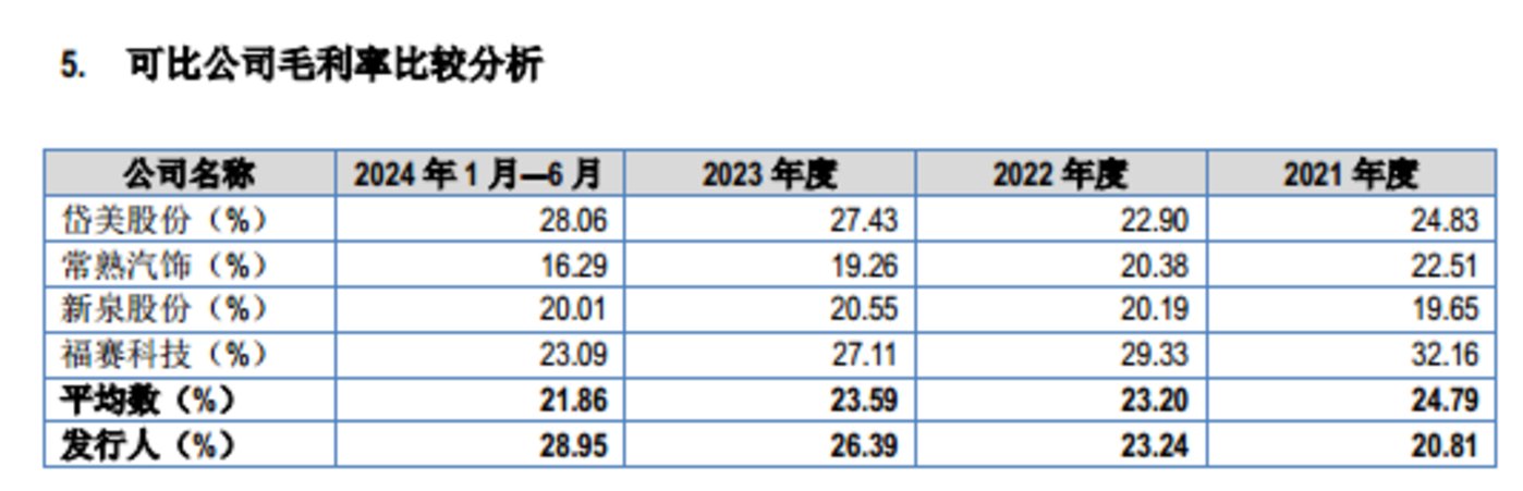 除了客户集中度高之外,毛利率也是导致通领科技净利润持续增长的关键。报告期内,通领科技的毛利率分别为20.81%、23.24%、26.39%、28.95%,同行可比公司平均值分别为24.79%、23.2%、23.59%、21.86%,可见,通领科技的毛利率持续增长,且自2023年起就已完全反超同行均值。