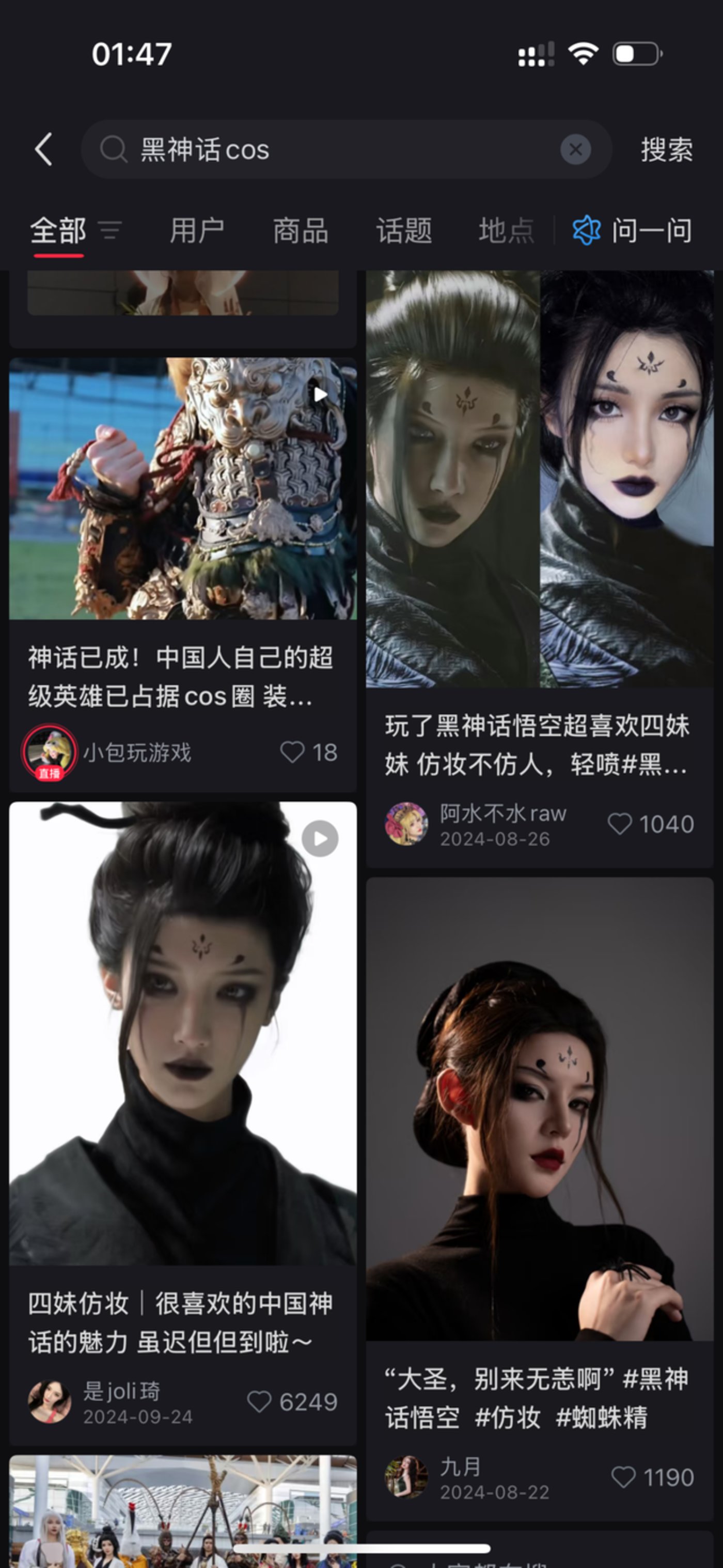 在上游,ACG内容的创作,是Cosplay生态的源头。尤其是近年来,国产动漫和游戏的崛起,比如《原神》《天官赐福》《狐妖小红娘》等热门作品,都极大地丰富了可供Cosplay的IP资源。去年上线的现象级游戏“黑神话:悟空”,更是成为各种漫展的顶流IP,大圣、四妹、小狐狸萍萍等,都是备受coser们青睐的角色。这些具有强辨识度的人物形象,为产业链注入了源源不断的灵感与商业潜力。