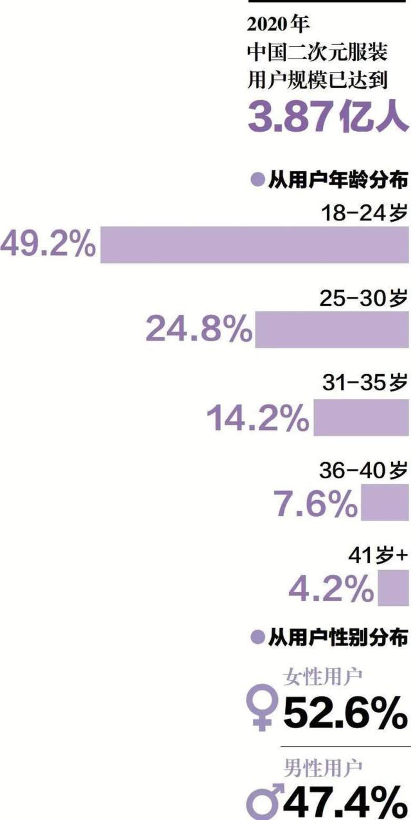 而下游,以“二次元人群”为主的消费者,是Cosplay商业生态的最终支撑。从人群画像来看,近五成Cosplay消费者年龄在18至24岁之间,超过两成在25至30岁之间,是一批具有强烈自我表达欲和审美主张的年轻用户。