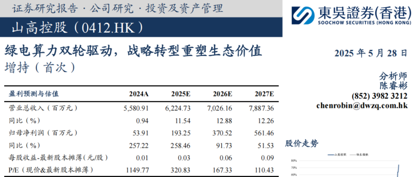 正如东吴证券(香港)研报中所说的,随着算力需求的持续爆发,山高控股有望通过“绿电降本+算力增值”双重红利释放价值。