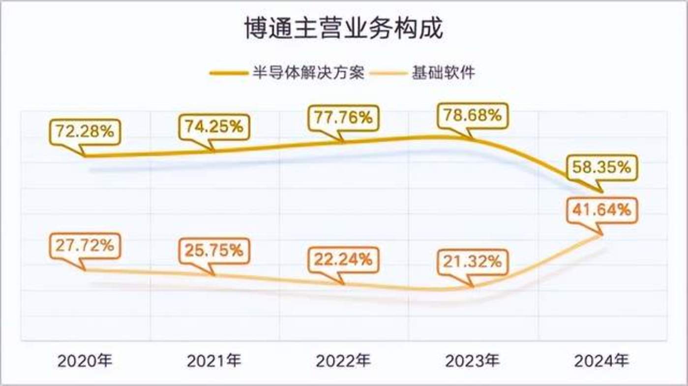 观察博通的财报,会发现其半导体解决方案的收入占比从2020年开始一直稳步增加。2024年,博通收入同比增长44%,达到创纪录的516亿美元。该财年,博通人工智能收入同比增长220%,达到122亿美元,推动公司的半导体收入达到创纪录的301亿美元。在2023年博通收购VMware后,2024年博通半导体解决方案的收入占比降至58.35%;但收入绝对值依旧在2024年实现了6%的增长。“软硬一体”正让博通迎来新的增长。