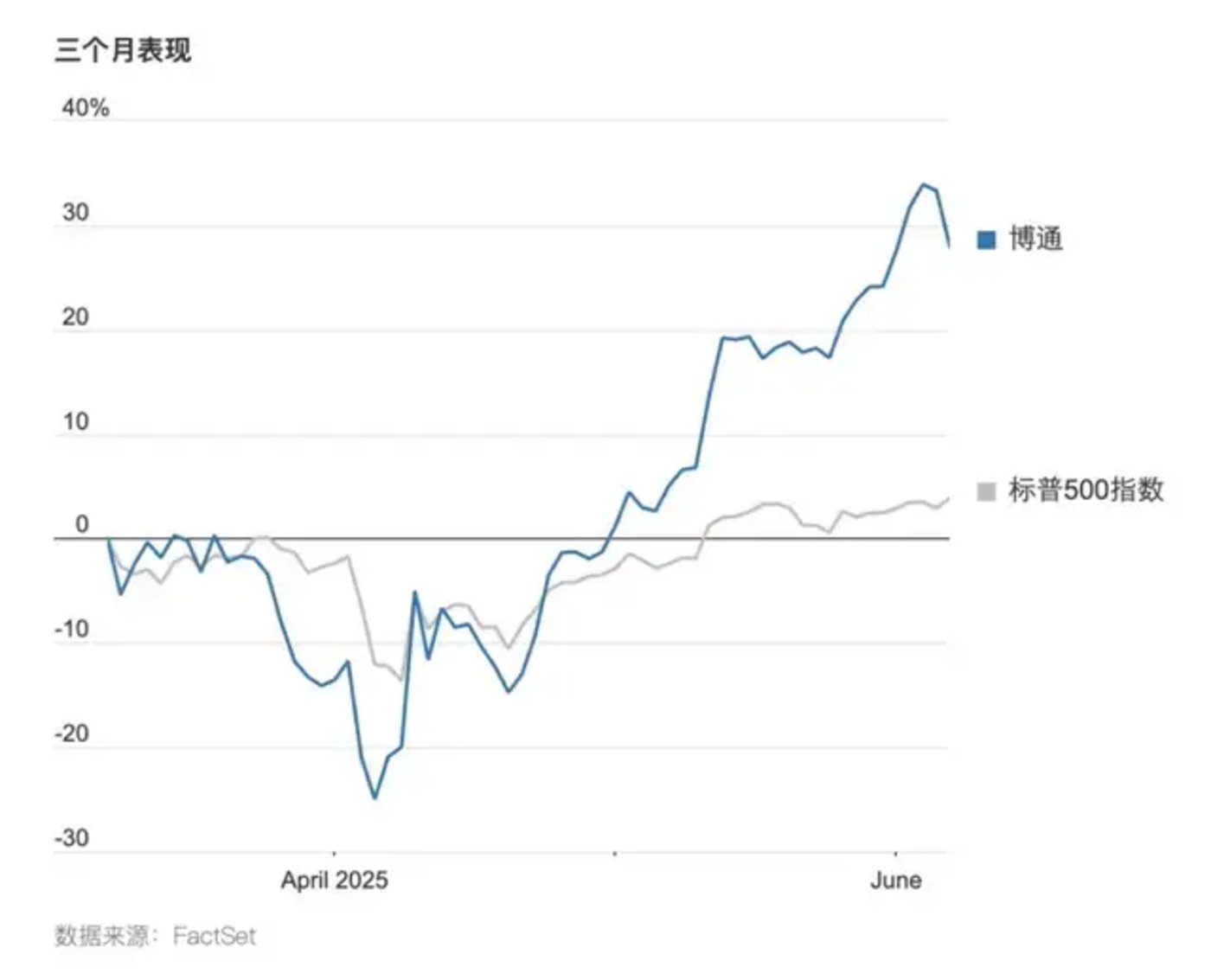 三个月以来,博通的表现远高于标普500指数