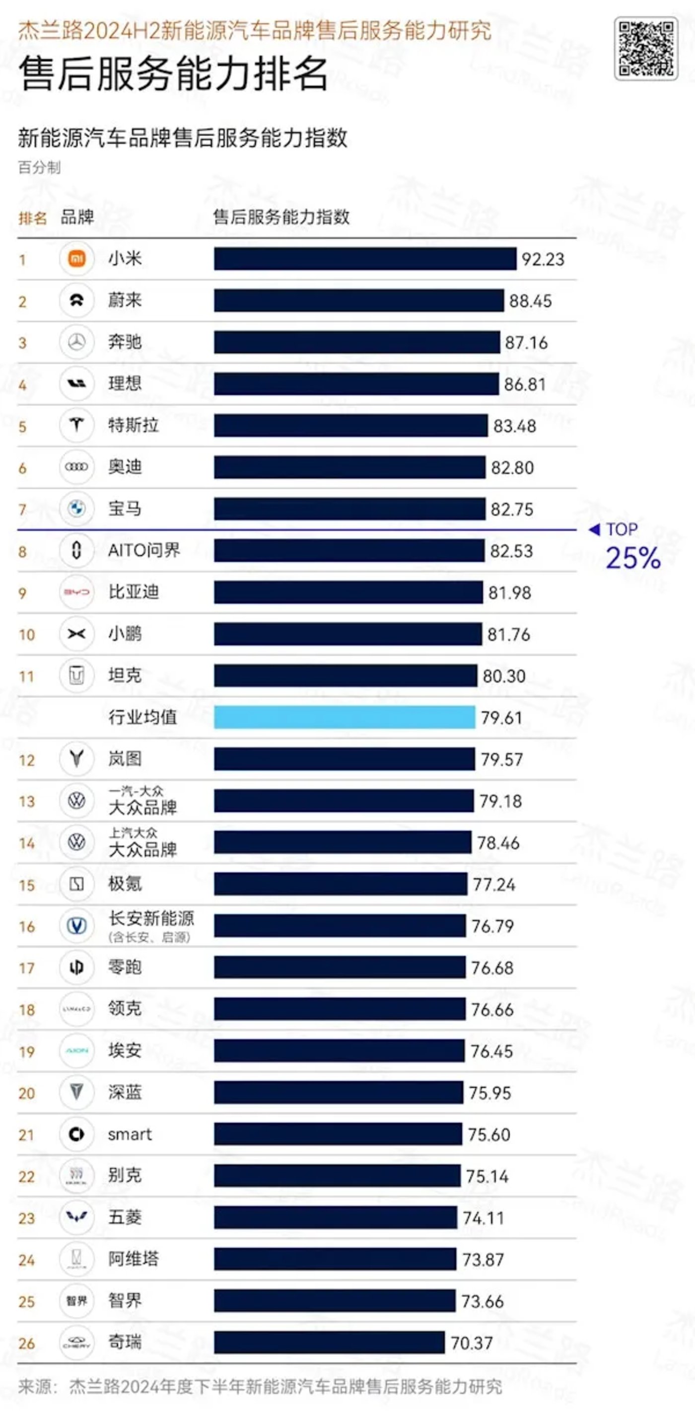 图/2024年H2新能源汽车品牌售后服务能力排名 来源/杰兰路 新能源观截图