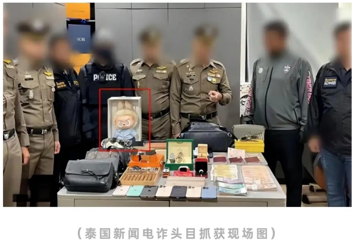 LABUBU在欧美及东南亚也相当火爆。据七麦数据显示,4月25日,泡泡玛特APP首次登顶美国App Store购物榜;在欧洲,黄牛为了抢货大打出手,贝克汉姆、Dua Lipa等明星争相晒出自己的LABUBU;在泰国,不仅有Lisa疯狂安利,皇室公主们也是被LABUBU轻松俘获。更夸张的是,在去年泰国的一次破获电信诈骗的行动中,其头目的赃物中,我们能很清楚地看到LABUBU的身影。