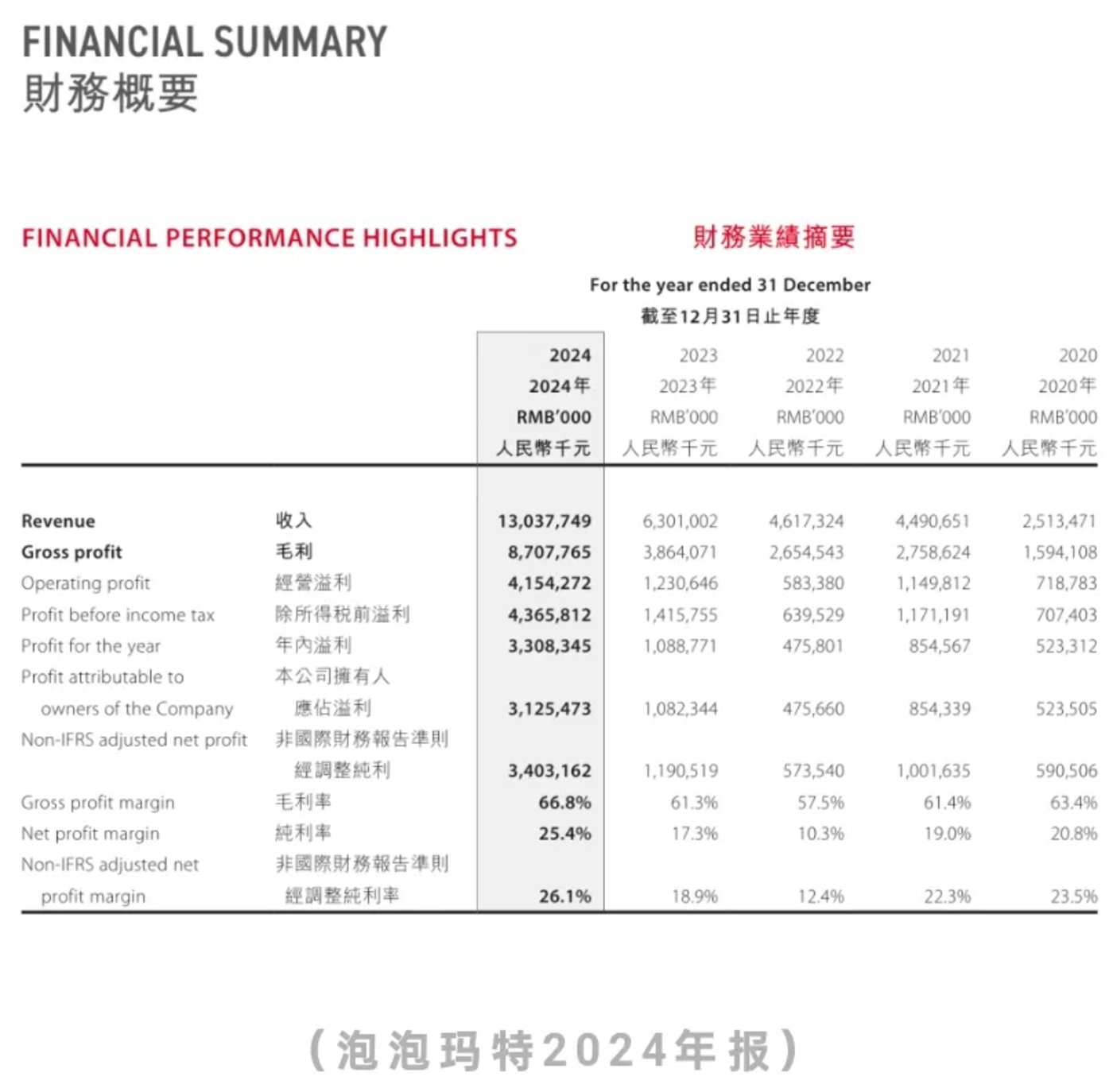 但对公司稍作深入了解,就会明白泡泡玛特对爆款IP的制造绝非偶然。根据泡泡玛特2024年报显示,LABUBU所隶属的“THE MONSTERS”系列IP,2024年收入达30.4亿元(同比增长726.6%),成为品牌增长引擎。同时,其他三大核心IP,MOLLY、SKULLPANDA、CRYBABY营收也均突破10亿元。四大核心IP共同撑起了泡泡的高增长营收。