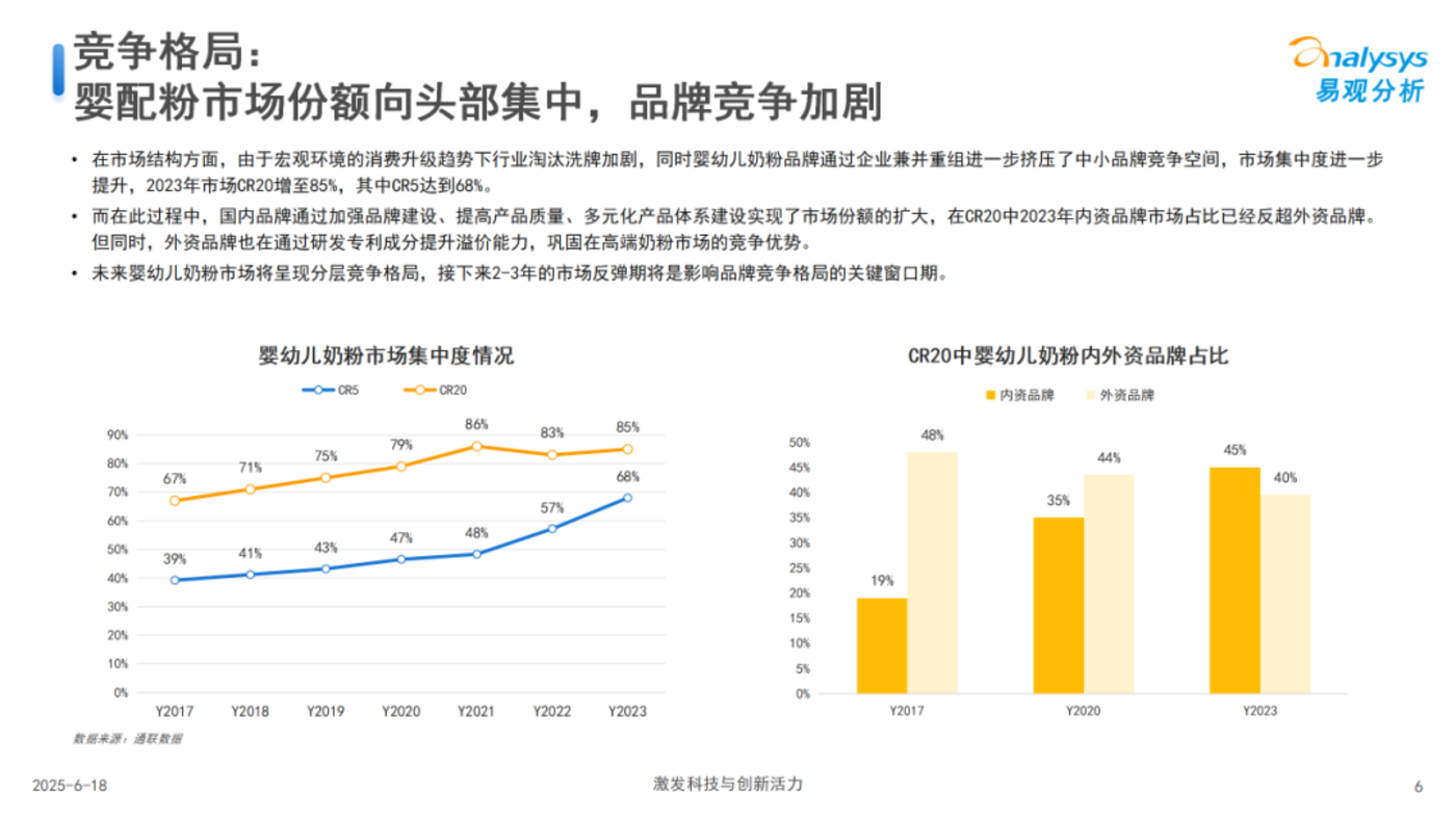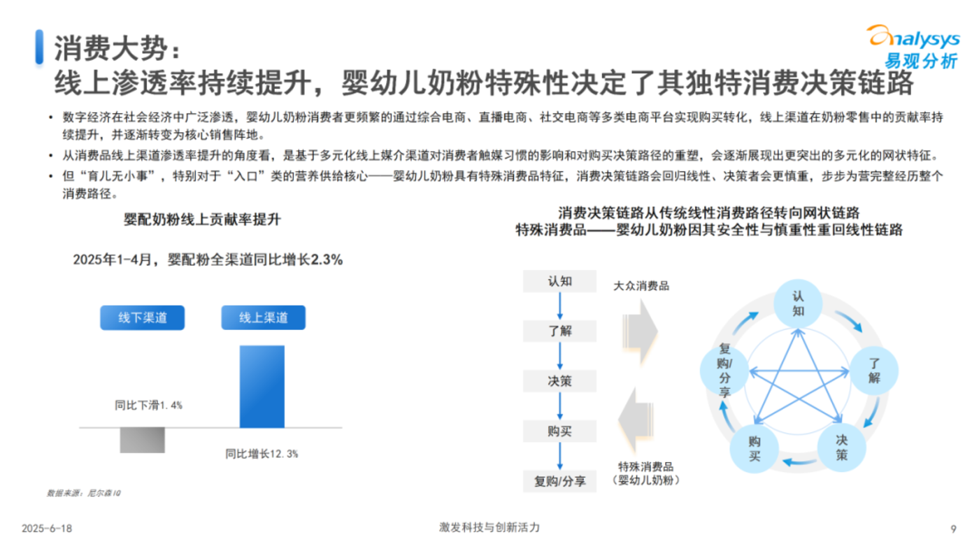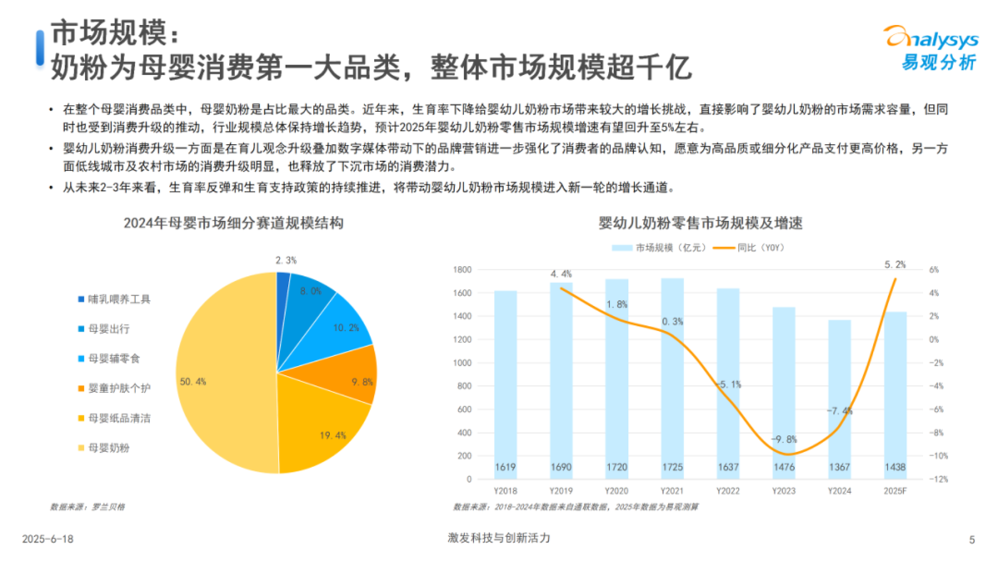 2025年国内消费市场复苏加快,居民消费意愿和消费信心不断释放,婴幼儿奶粉消费市场在生育率反弹和生育支持政策等多因素推进下进入新一轮的增长通道。对于品牌来说,一方面是新一代消费者的消费理念和消费能力将婴幼儿奶粉市场竞争从产品维度更快速地拉升到品质维度和体验维度;另一方面,更具备资金和资源实力的头部品牌通过强力补贴争夺孕育早阶用户和存量消费者,而中小品牌则将在逐渐挤压的市场空间中面对更加激烈的生存挑战,需要在细分赛道或者细分市场进行突围与求存。