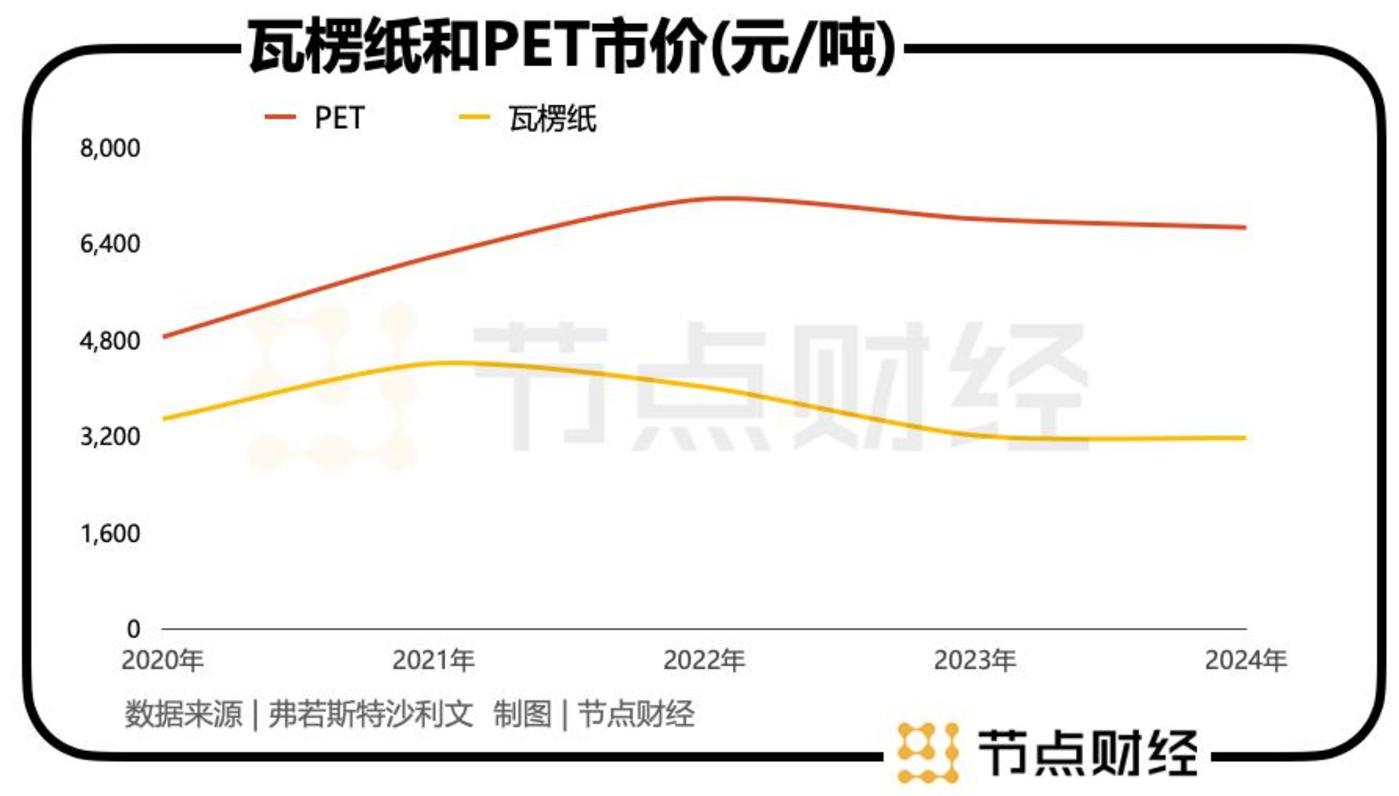 《节点财经》获悉,东鹏特饮的直接原材料中,包装占了相当大的分量,其中又以PET(聚对苯二甲酸乙二醇酯)和瓦楞纸为重头戏。