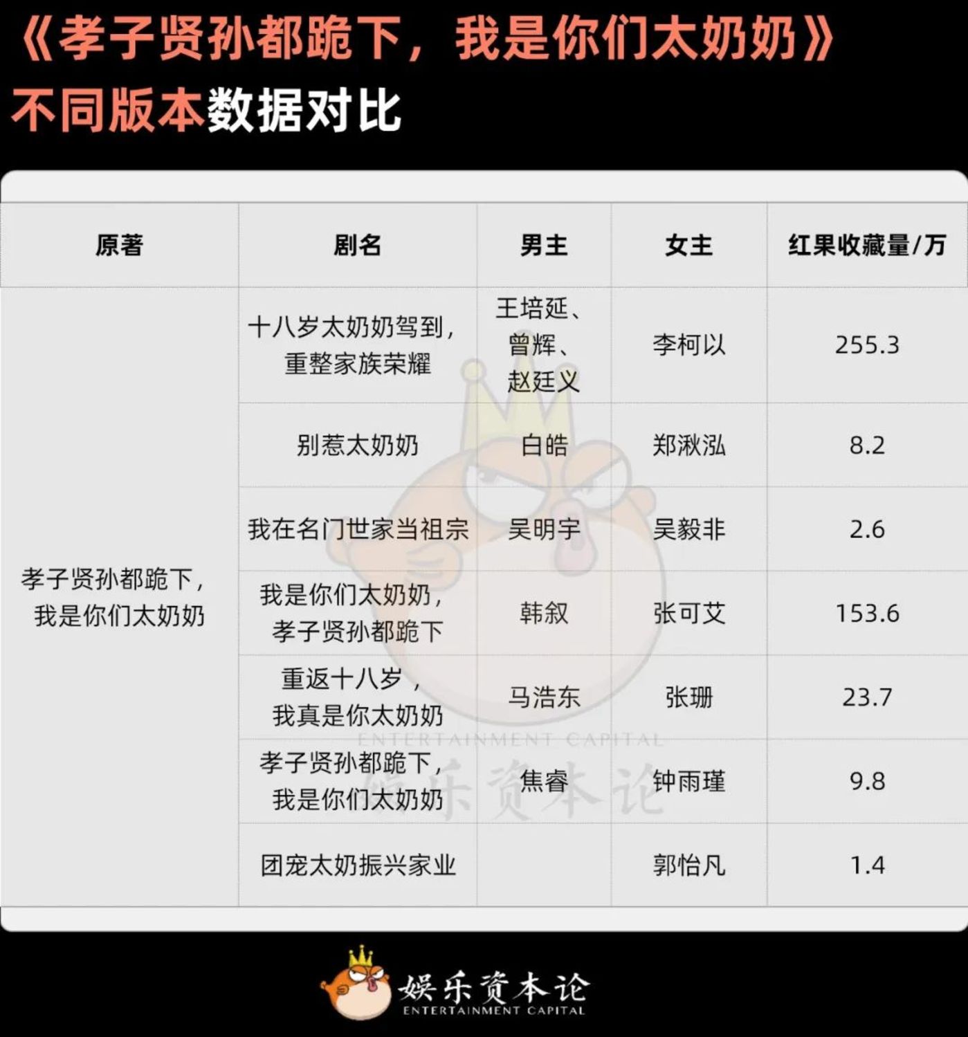 《孝子贤孙都跪下,我是你们太奶奶》 不同版本数据对比