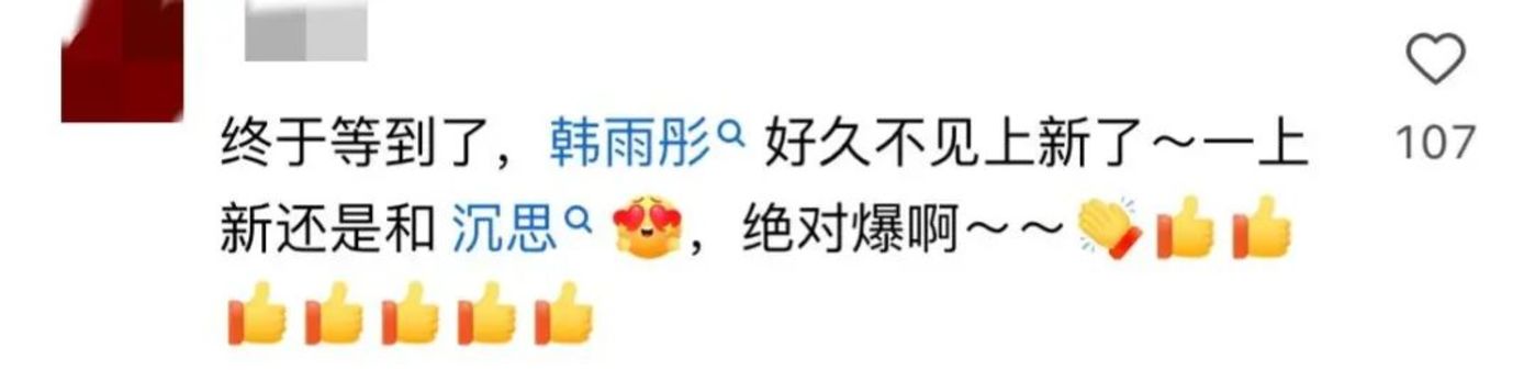 听花岛旗下艺人韩雨彤饰演的《月光锈》同样如此,与另一版本《危情博弈》评论区中以“男主”“女主”指代角色不同,《月光锈》的评论区中大多数观众都是因支持两位主演“慕名来看”。