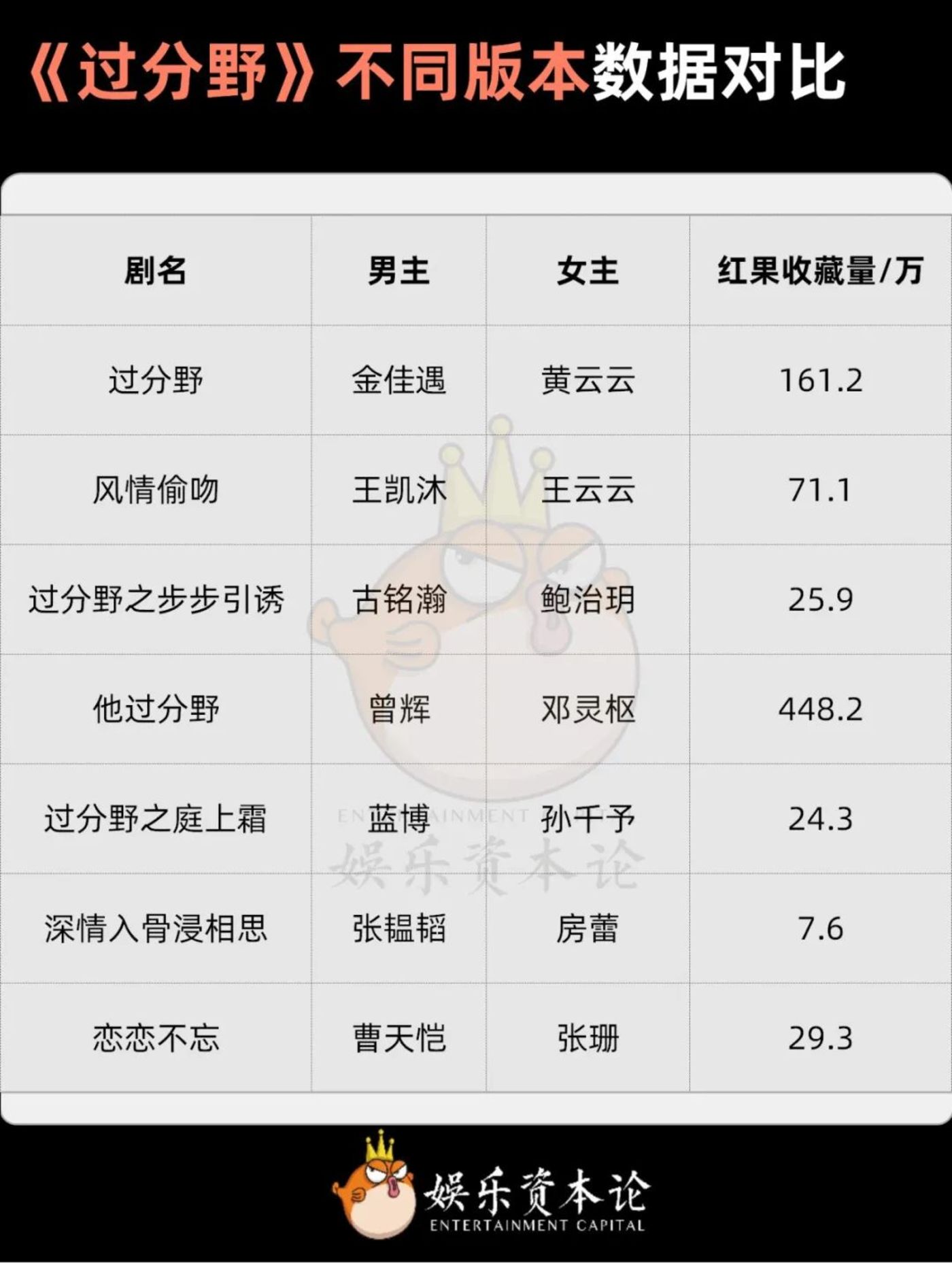 听花岛承制、头部艺人曾辉出演的《他过分野》也因此在相同IP中胜出。出演《他过分野》前,曾辉已凭借《完蛋 我养的小白脸是大佬》等多部剧跻身头部演员行列,与其他版本主演热度明显拉开差距。