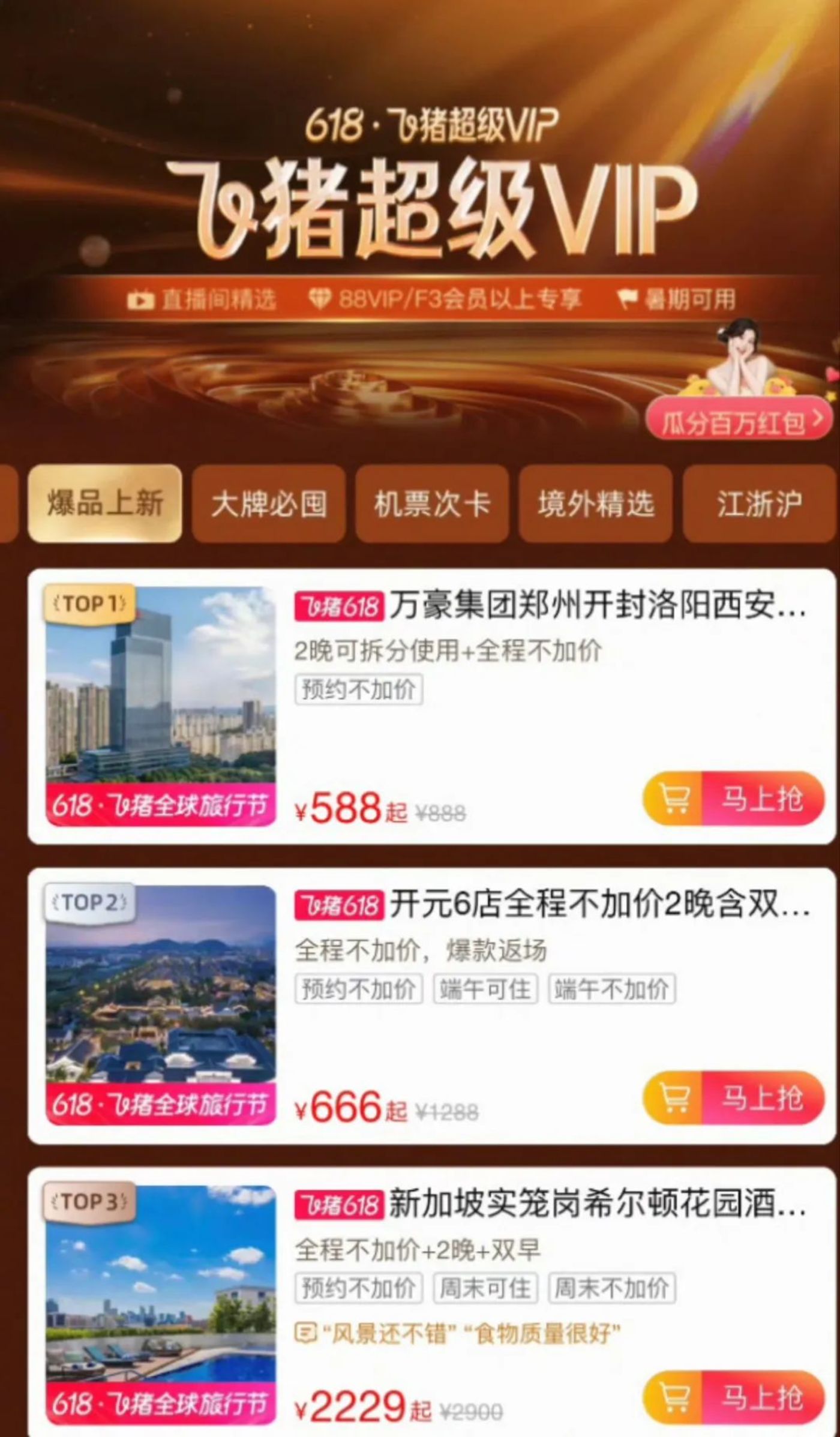 与淘天业务的打通,成为了飞猪业务逆转局势的转折点。飞猪的核心业务在于机酒领域,早在此次架构调整之前,飞猪的会员与淘宝88VIP早已实现会员权益打通,88VIP用户可直接享受飞猪F3会员权益,包括酒店预订折扣、机场贵宾厅服务等。