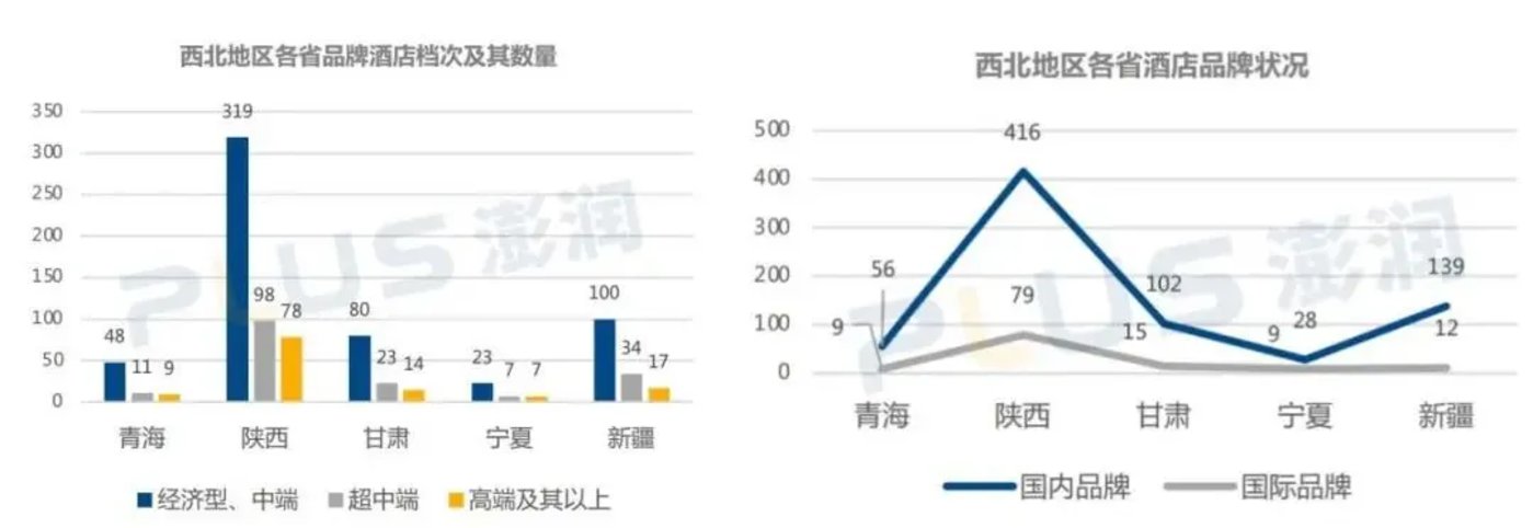 澎润《西北地区酒店投资洞察报告》就曾指出,西北地区酒店供给以中低端酒店为主,中高端酒店缺乏发展,西北地区中档酒店及经济型酒店占比高达66%,超中端仅占20%,高端及其以上仅占14%,酒店档次结构失衡较为严重。