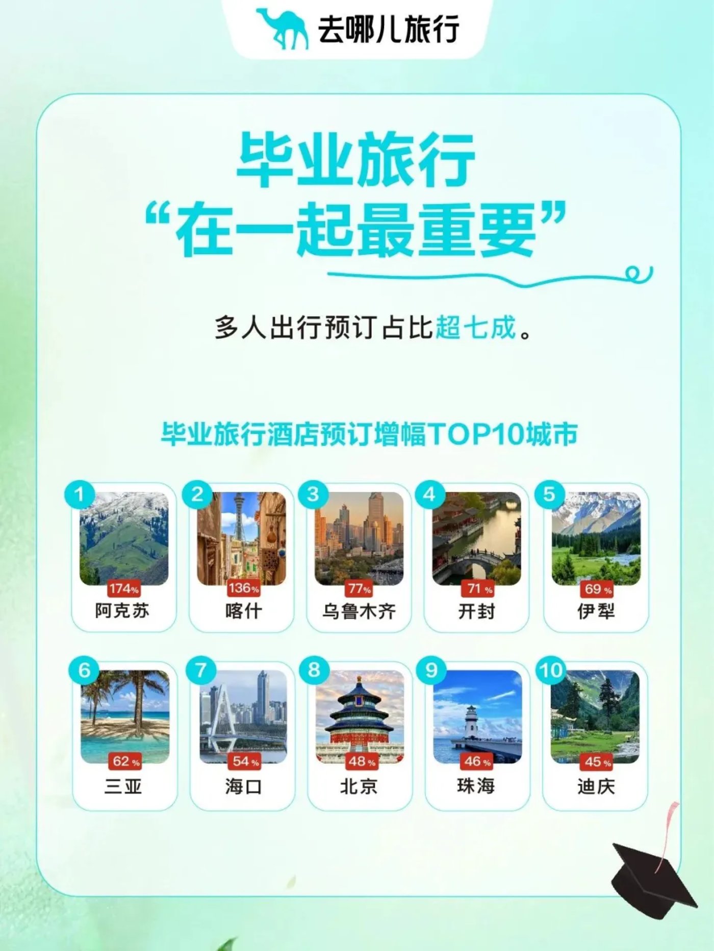 去哪儿数据显示,阿克苏、喀什、乌鲁木齐、伊犁等地皆上榜酒店预定增幅TOP10,其中,阿克苏和喀什酒店预订增幅超1.4倍,多人出行预订占比超7成。