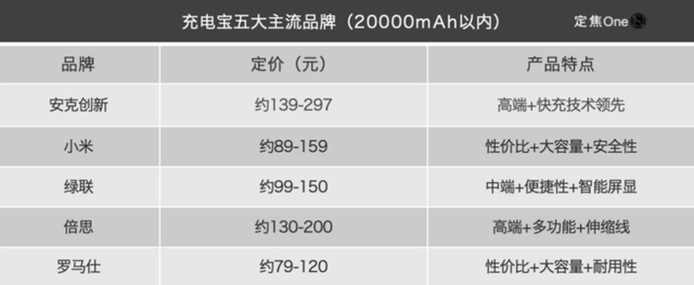 纵观竞争格局和价格区间:小米和罗马仕主导大众市场,安克在高端市场占优。