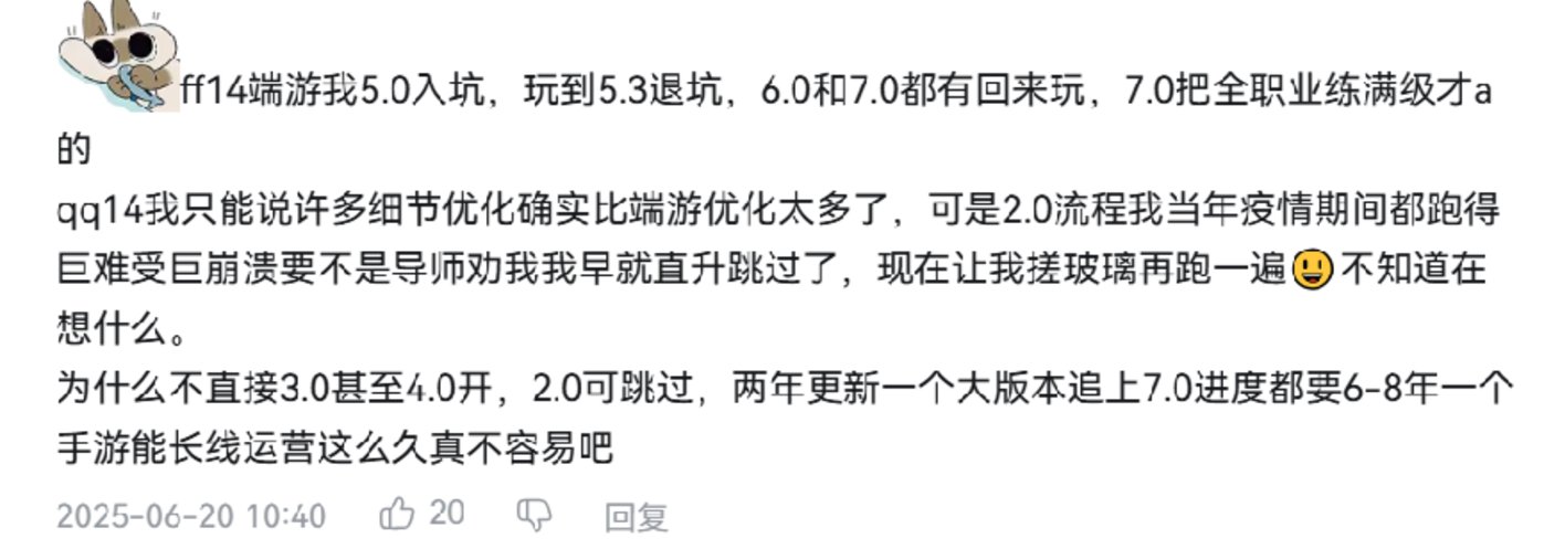 吉田直树也曾在采访中提到,FF14手游的定位不是单纯的IP衍生,而是一款新的MMO。那么,一些FF14端游积弊已久的糟粕,应该能在能在手游轻量化过程中消弭。