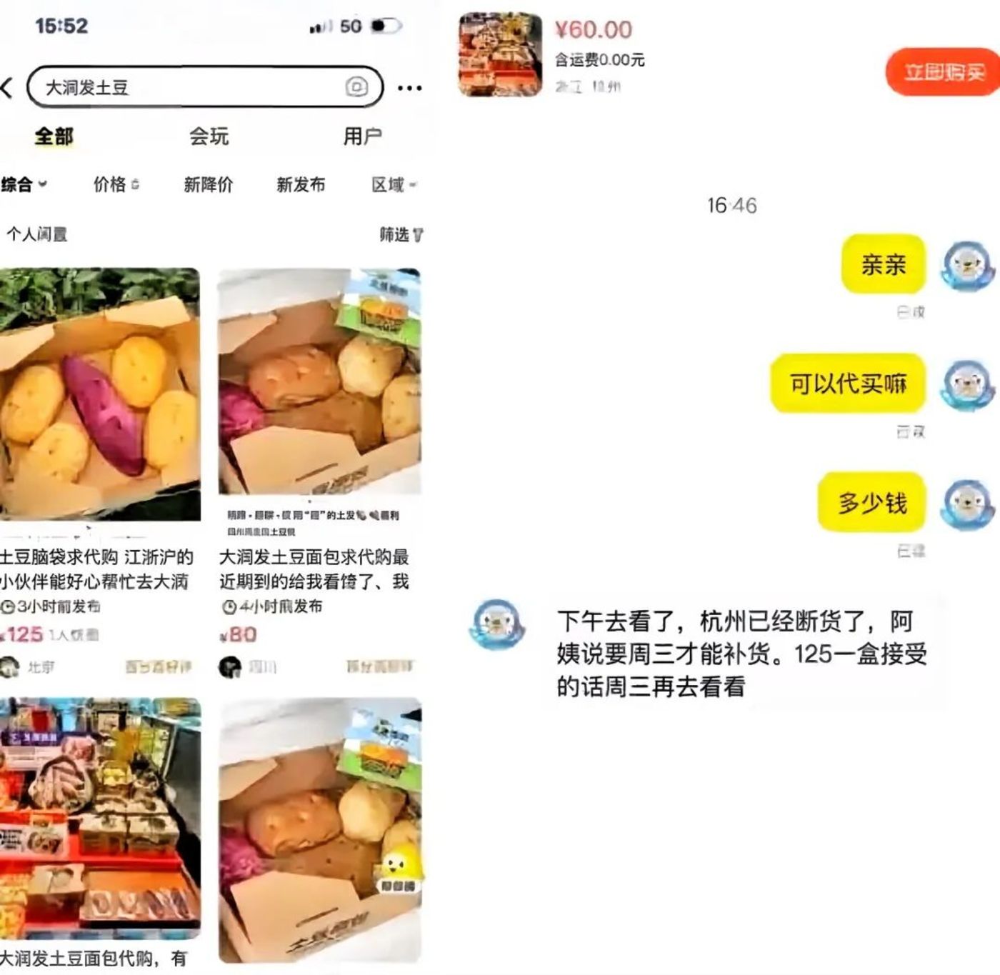 大润发自主研发的土豆面包,外形酷似土豆,馅料中土豆含量占一半,凭借「看起来是土豆,吃起来也是土豆,但它不是土豆」的趣味性在社交媒体迅速走红。大润发还给土豆面包设计了创意包装,配上一个铲子造型的勺子,营造出「挖土豆」的场景氛围。