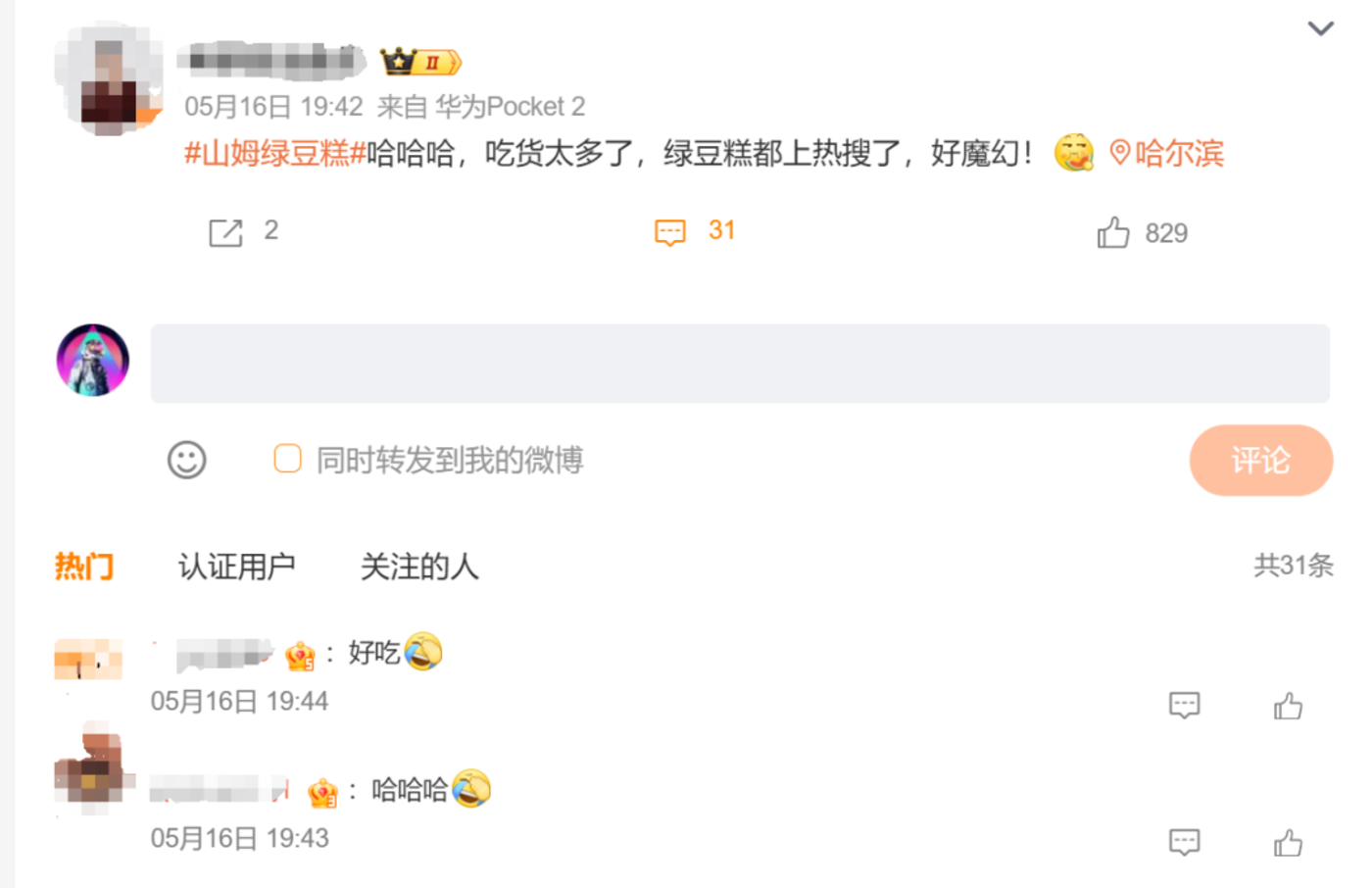 几天后,这款桂花酒酿绿豆糕登上微博热搜。