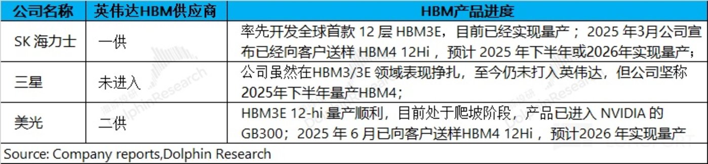 对于市场关注点的 HBM 业务,海豚君预期公司本季度实现 15 亿美元左右的 HBM 收入,环增 5 亿美元左右(上季度环比 3 亿美元)。而随着 GB300 的量产,下半年公司的 HBM 环比增长有望继续扩大。
