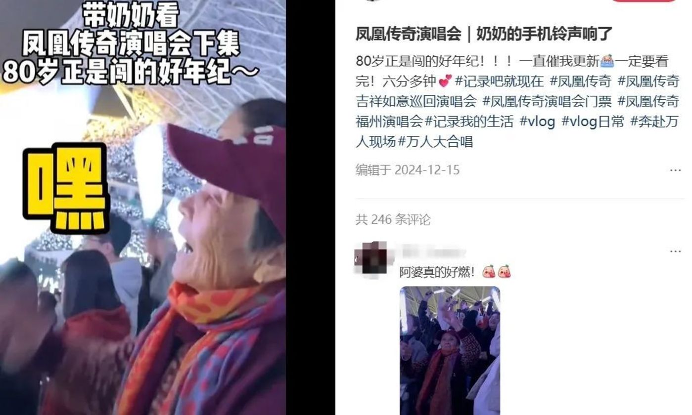 从“农业重金属”到“军训顶流”的凤凰传奇就是例证。从2024开始全国巡回演出的凤凰传奇,几乎是场场爆满;全场“军训式”合唱里既有年轻人、中年父母,也有头发花白的老年群体。