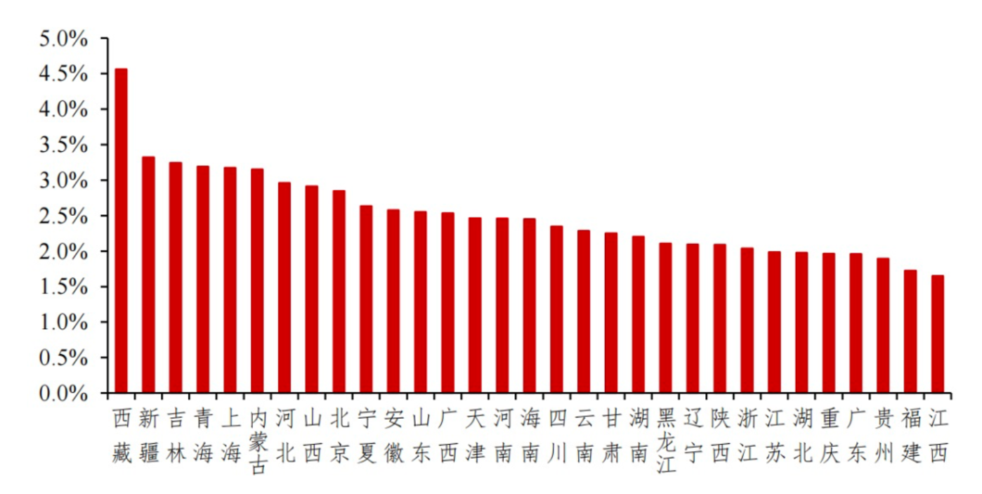 2020年分省份老年人失能率情况 数据来源:国家统计局,中国银行研究院