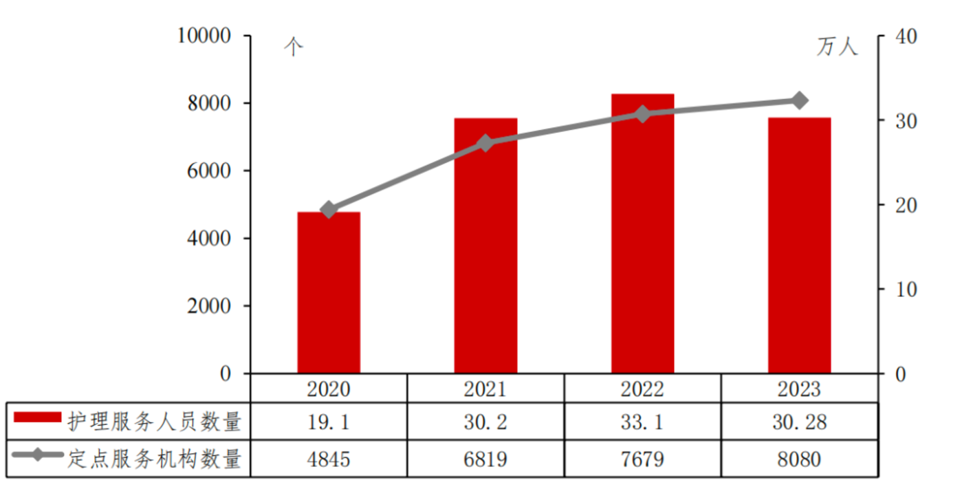 2020-2023年我国长期护理定点服务机构及服务人员情况 数据来源:国家统计局,中国银行研究院