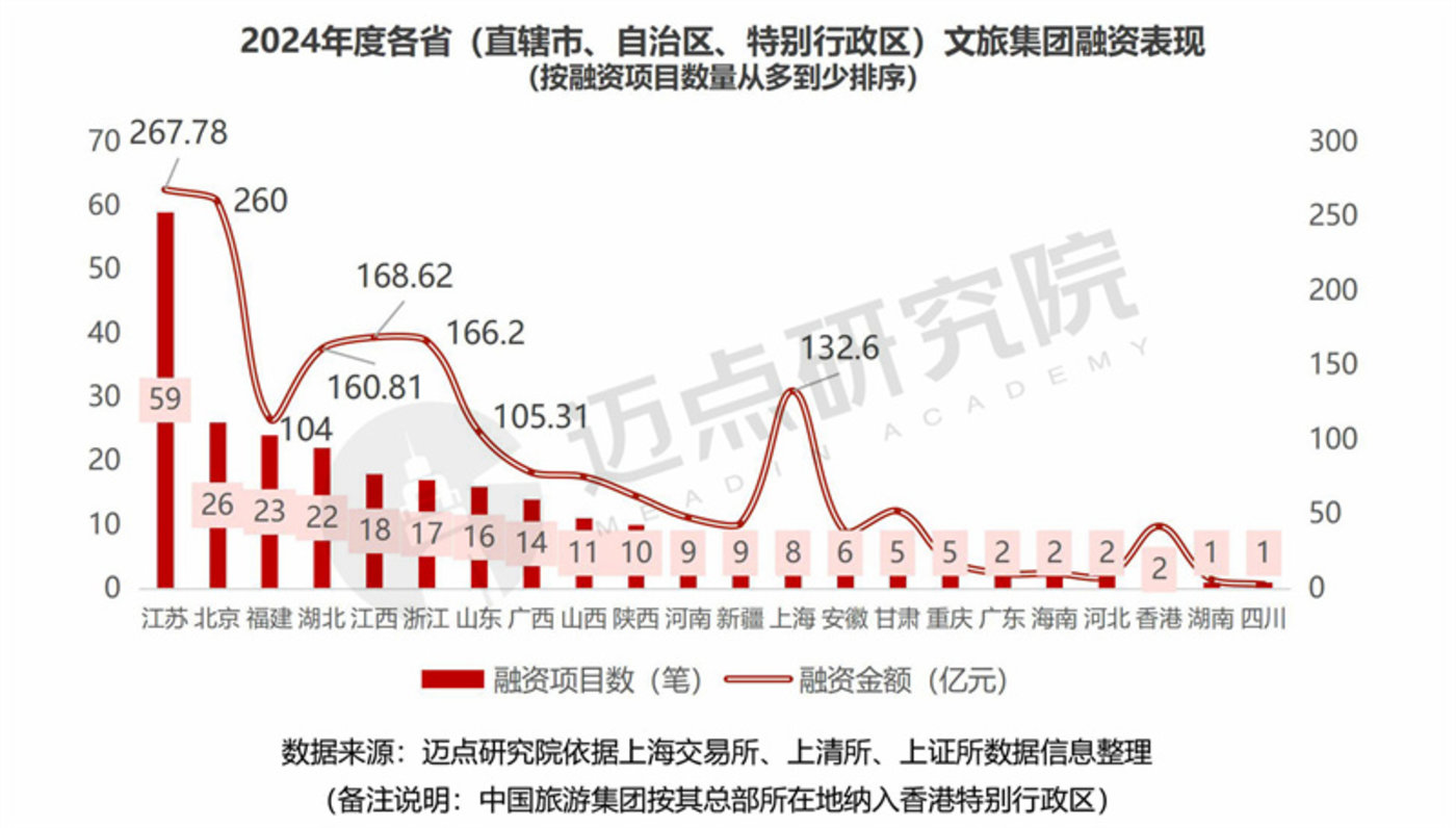 湖北文旅集团:2024年,湖北文旅集团旗下44家景区、46家酒店累计接待游客3000万人次,营收突破600亿元,资产规模超1000亿元,实现了资产整合再上新台阶、资本运作获得新质效的发展目标。该年度,超百亿元的融资金额,为其文旅项目建设、旅游景区提档升级、文旅新产品开发等提供了资金支撑。