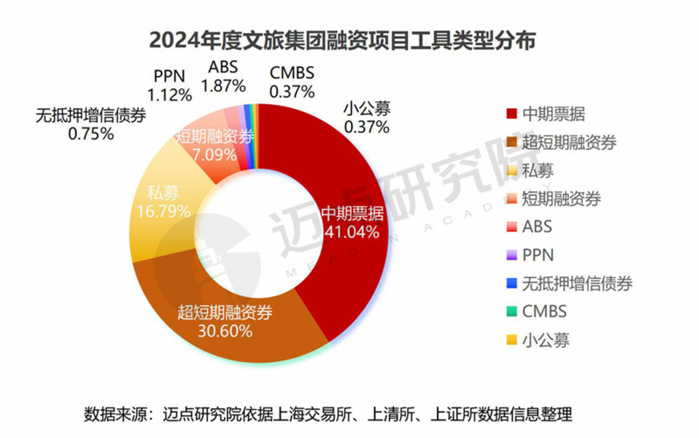 从融资工具类型分析,据统计分类共采用9种,类型多样,中期票据和超短期融资券数量最多,二者合计占比超71%,即因灵活性高、成本较低、市场接受度高等优点备受文旅集团青睐。除常用的中期票据、超短期融资券、短期融资券、私募外,各文旅集团同时创新拓展ABS(资产支持证券)、PPN(定向债务融资工具)、无抵押增信债券等其他融资方式,进而保障文旅资产得以盘活、文旅项目得以落地等。
