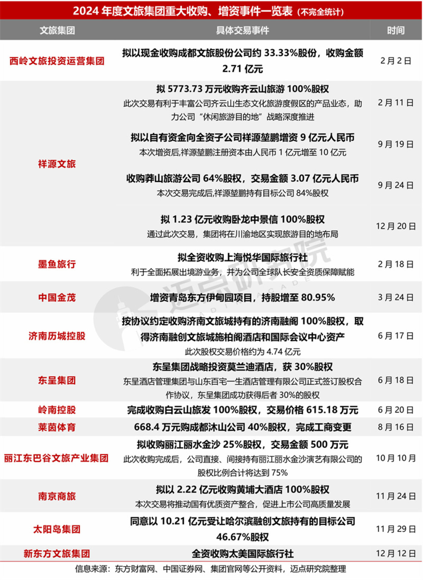 2024年,文旅行业资本市场表现活跃,文旅集团加速内部战略调整:祥源文旅与中景信的“买山”与“造山”引人注目、成都文旅选择主动终止挂牌、张家界旅游集团启动重整、融创“断腕”冰雪大世界、复星旅文私有化退市等。