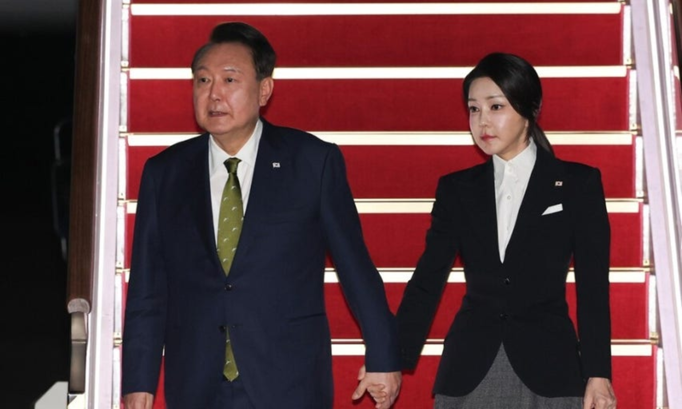 图:4月11日,被弹劾下台的尹锡悦与金建希一同离开总统官邸。