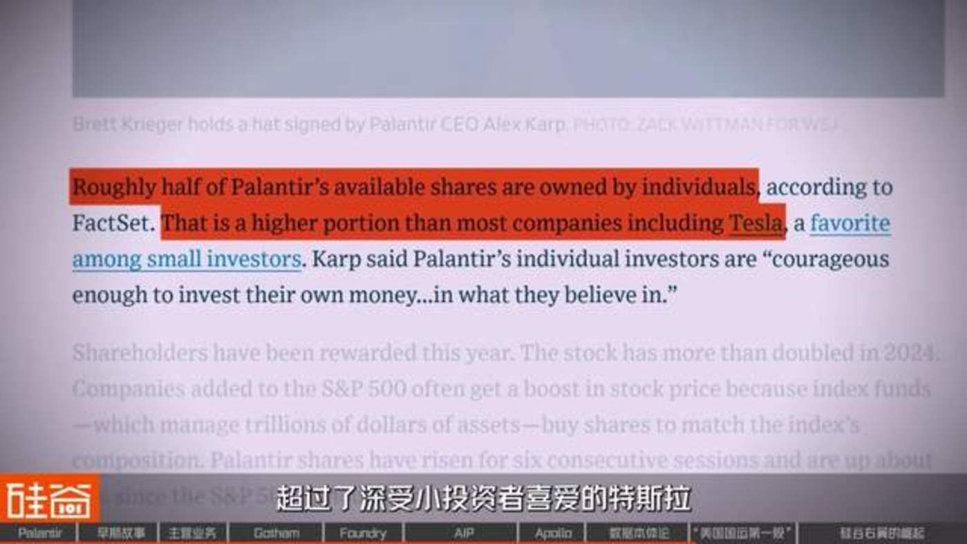 根据FactSet的数据显示,Palantir大约一半的股票由个人持有。这一比例,超过了深受小投资者喜爱的特斯拉。